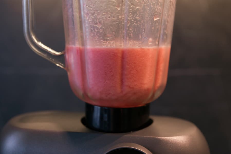 Ближе к 15-й секунде томаты уже превратились в однородную массу, но сквозь стекло блендера всё еще виднелись крупные кусочки, поэтому мы продолжили измельчение и еще через 15 секунд получили вот такой результат.