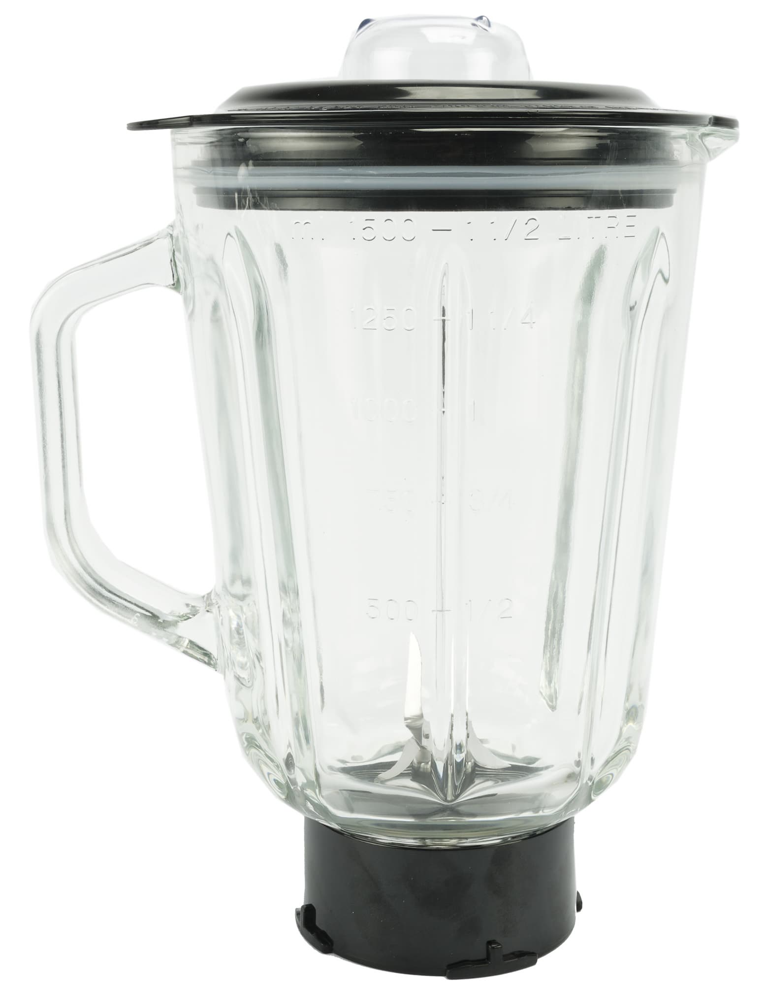 Увесистая 1,5-литровая чаша блендера выполнена из толстого прочного стекла. На ней есть риски: миллилитры, литры, унции и чашки.