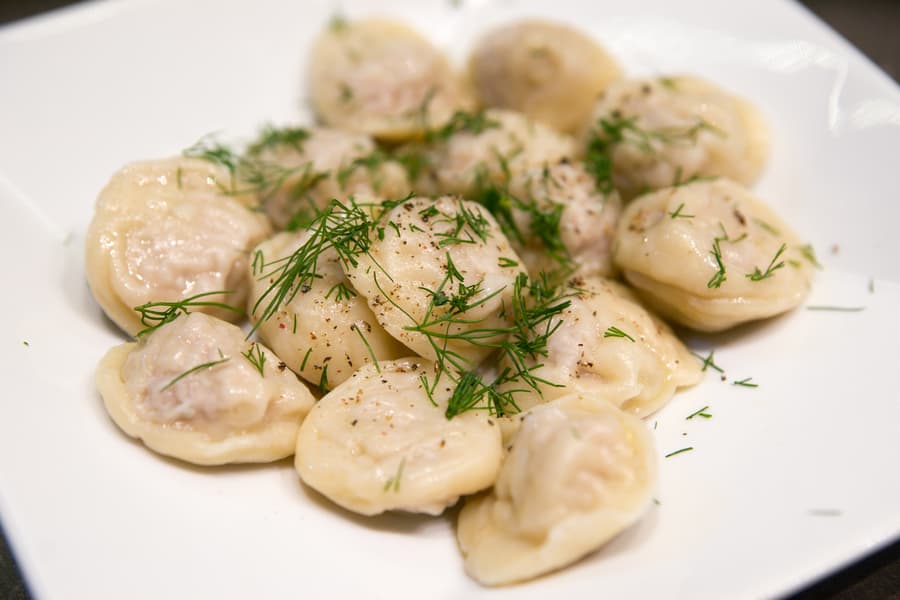 Накрыли пленкой, отправили в холодильник на пару часов, после чего приступили к формированию пельменей с фаршем из предыдущего теста.