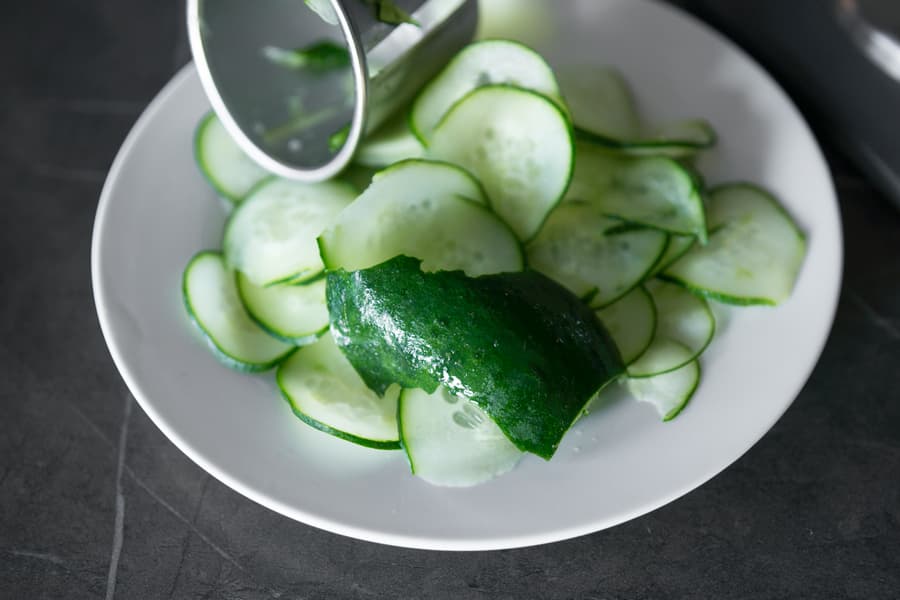А вот огурец нашинковался лучше и, естественно, быстрее — 100 г всего за 15 секунд.