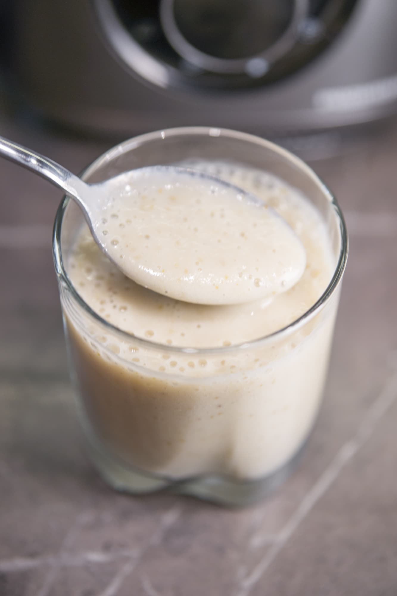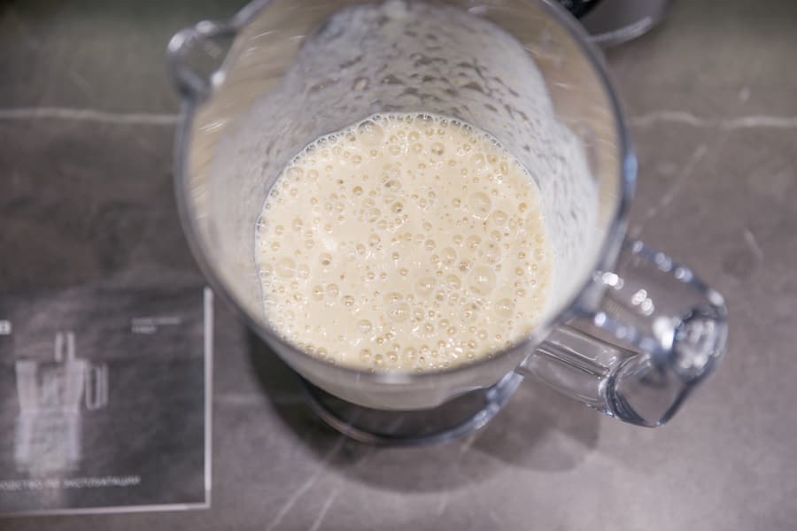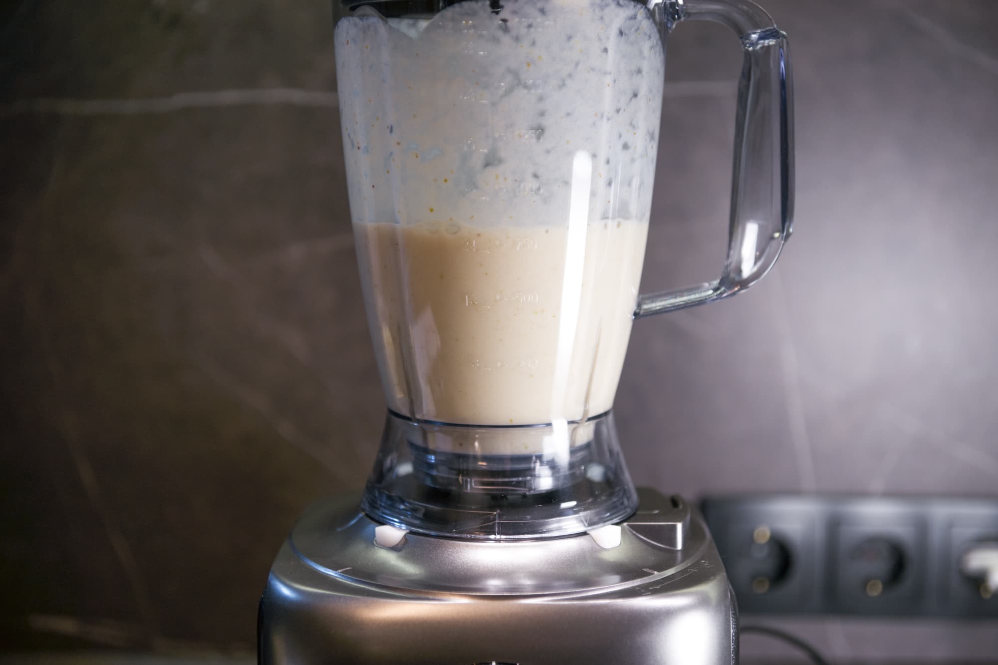 Программа работает ровно минуту, в ходе которой вначале блендер запускается импульсно, затем переходит на постоянную скорость, увеличивая ее по нарастающей. Уже через 30 секунд все ингредиенты полностью измельчились, но мы не стали прерывать устройство и дали блендеру возможность качественно взбить массу.