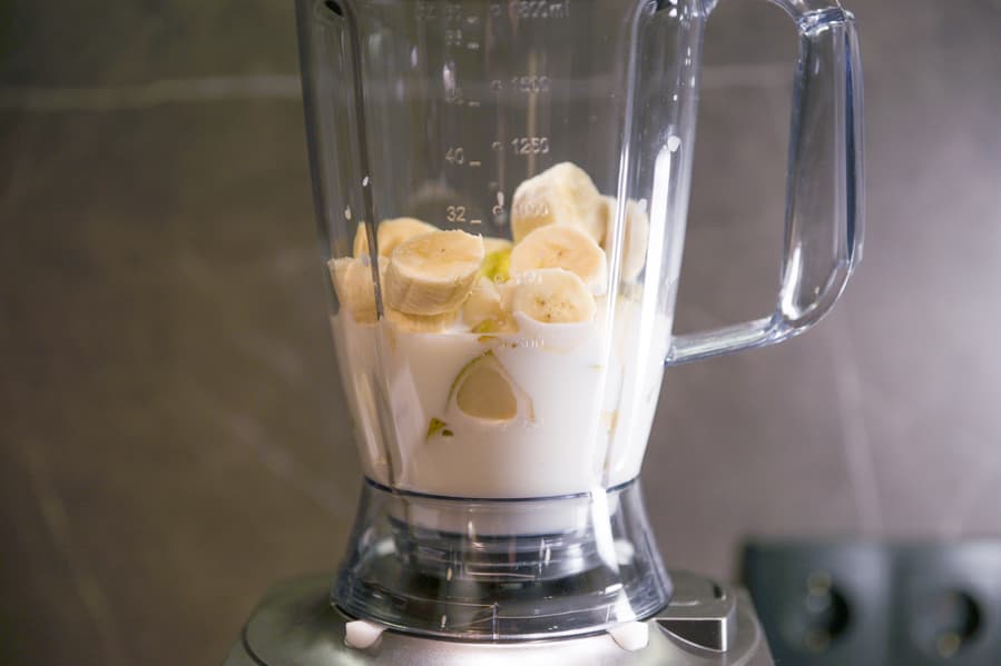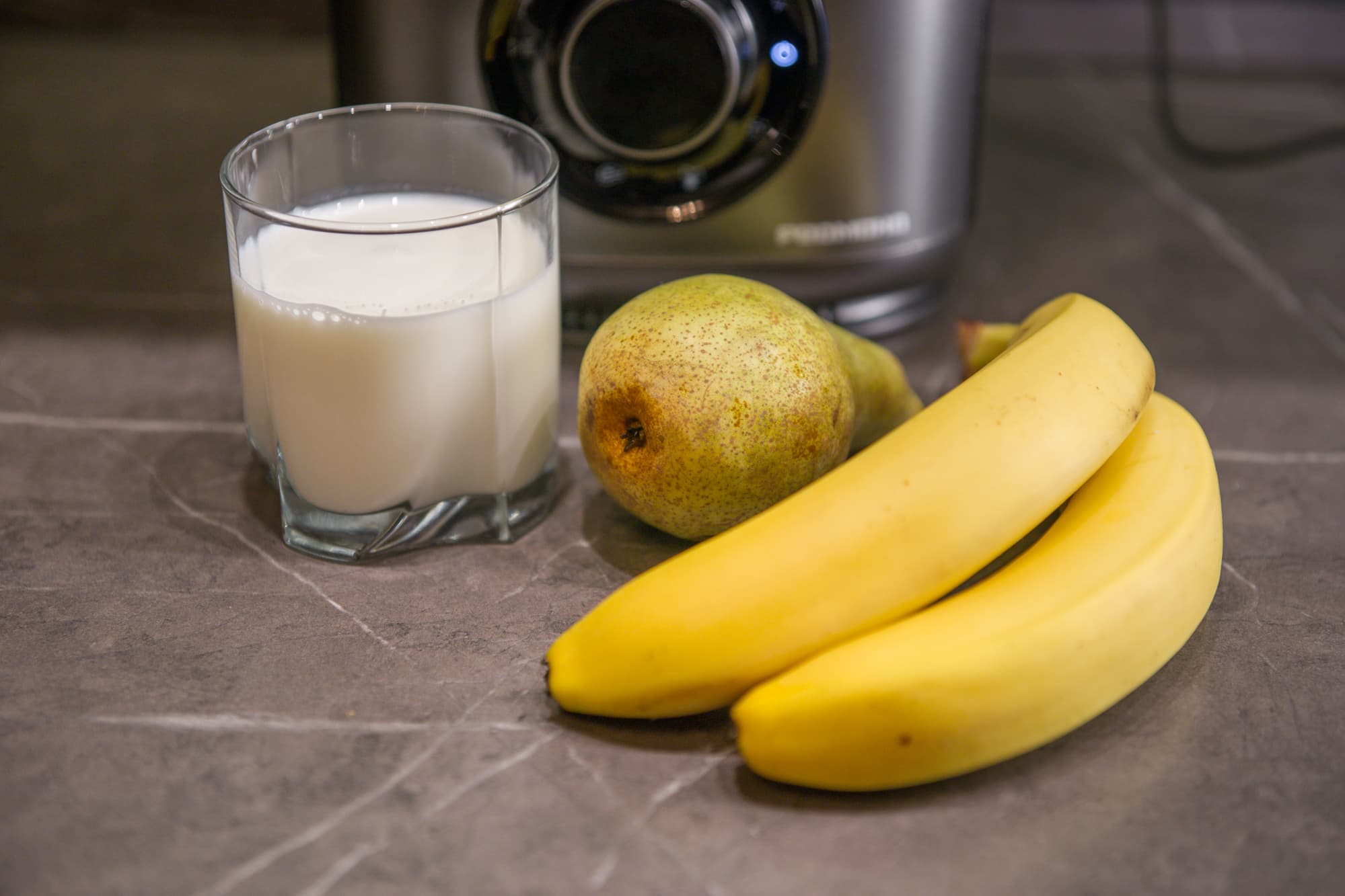 Для смузи мы использовали 250 мл молока, пару крупных бананов и грушу.