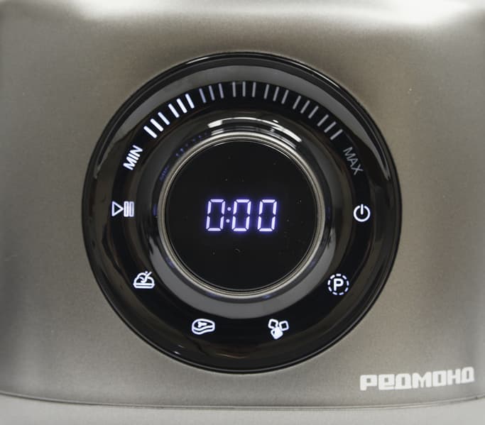 Теперь для быстрого запуска можно нажать кнопку Старт/Пауза. Запустится двигатель, а на небольшом циферблате начнется прямой посекундный отсчет времени работы. В процессе для плавного изменения мощности от 1 до 7 следует крутить круглый регулятор посередине.