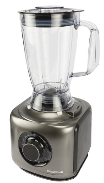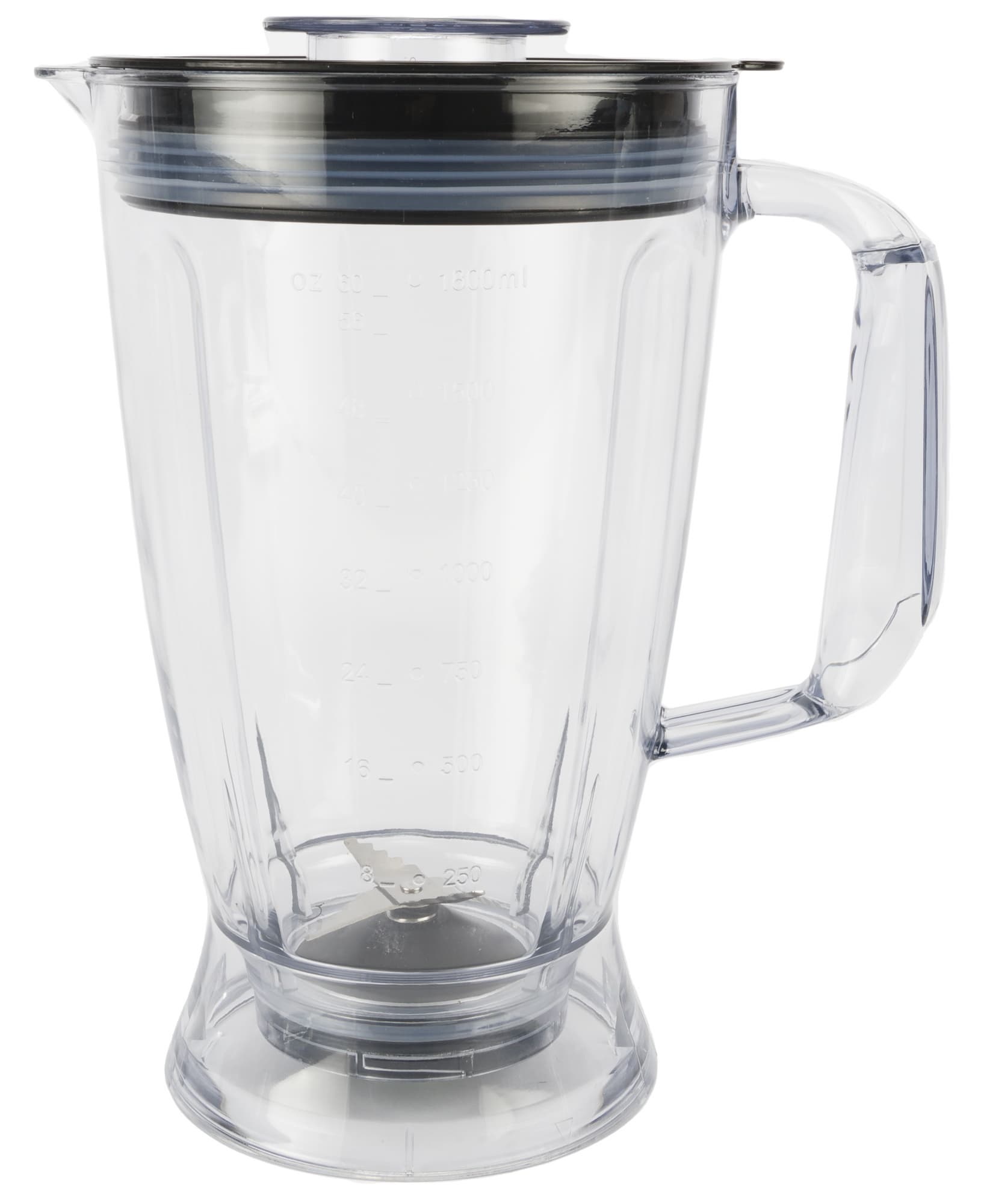 Чаша блендера классической формы изготовлена из прочного прозрачного пластика. Сбоку емкость оснащена удобной ручкой. На стенках есть риски до 1800 мл.