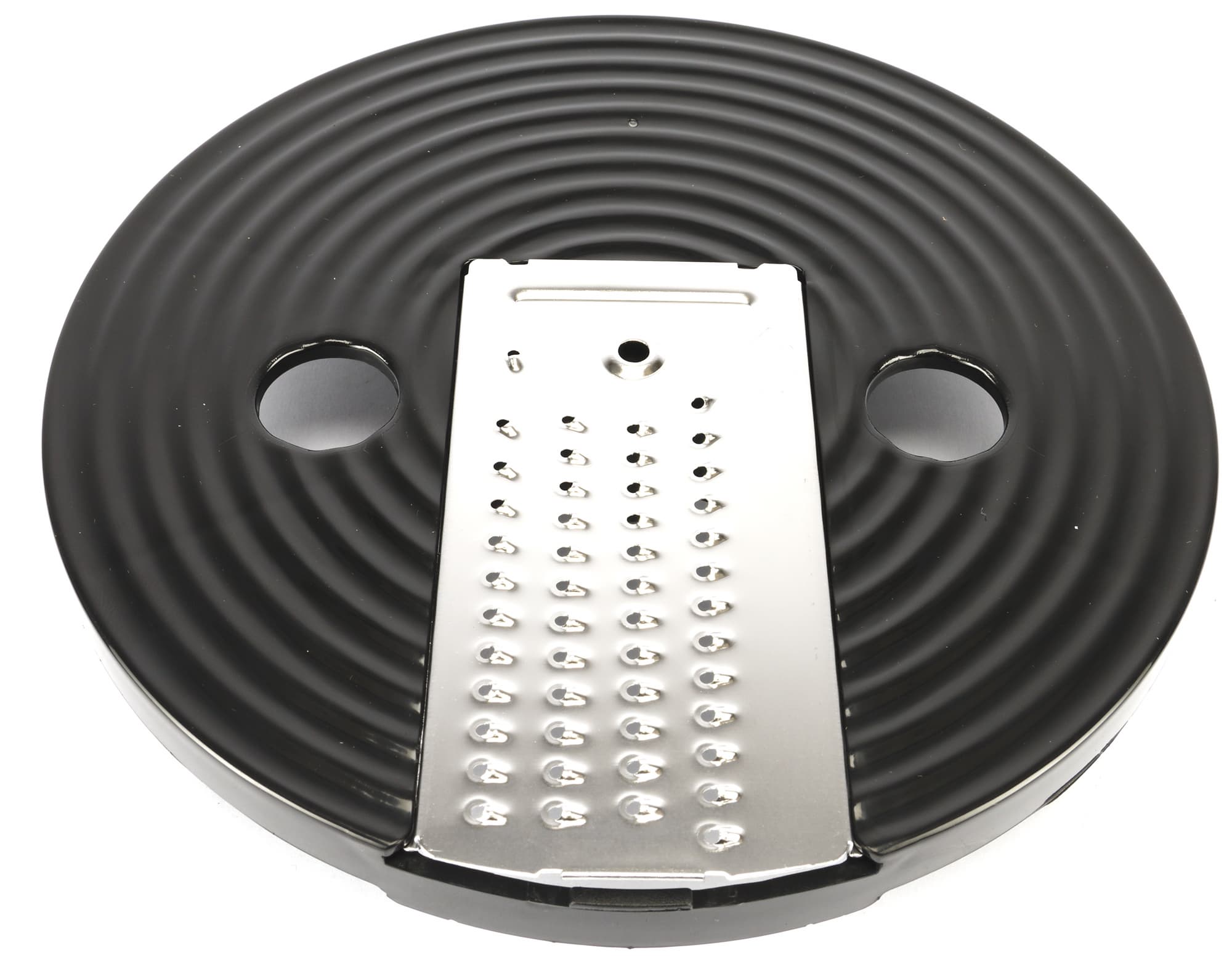 Здесь мы видим три вида терок и несколько видов шинковок — мелкую и крупную, а также шинковку для нарезки картофеля-фри. Для крепления терок и шинковок предназначен отдельный диск-основание, который также крепится на втулку. Режущие насадки закрепляются в диске интуитивно понятным образом. Что-либо перепутать или собрать насадку неправильно невозможно.