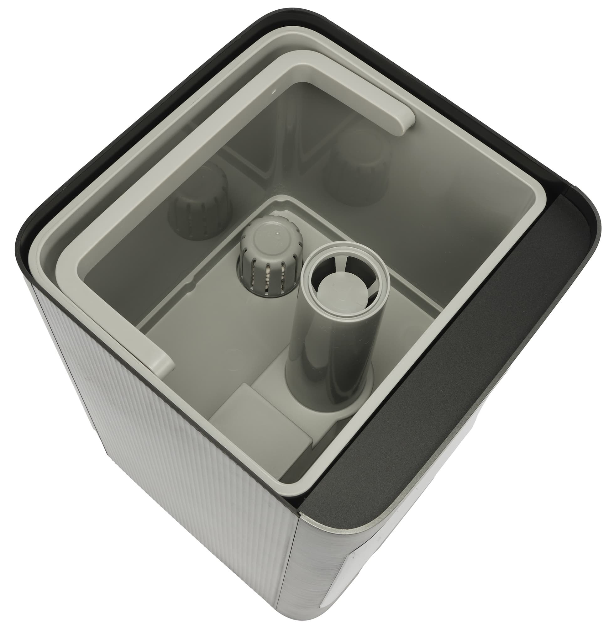 Под крышкой размещается резервуар для воды, через который проходит воздуховод от испарителя. Емкость бака — 4,5 литра.