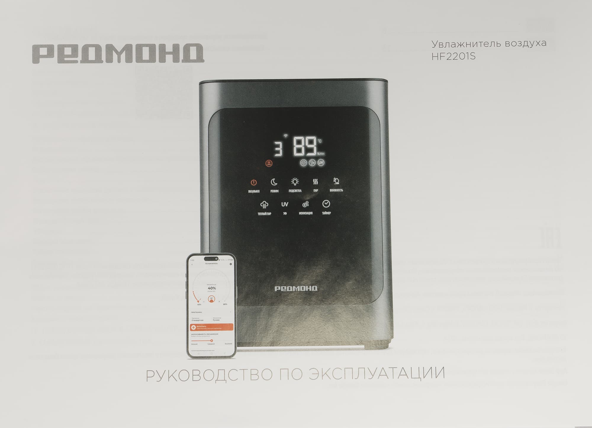 Перед началом эксплуатации Redmond HF2201S следует распаковать, извлечь из рабочей камеры пористую прокладку, фиксирующую поплавок, и удалить с корпуса наклейки (за исключением шильдика с серийным номером и датой выпуска).