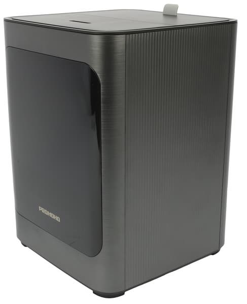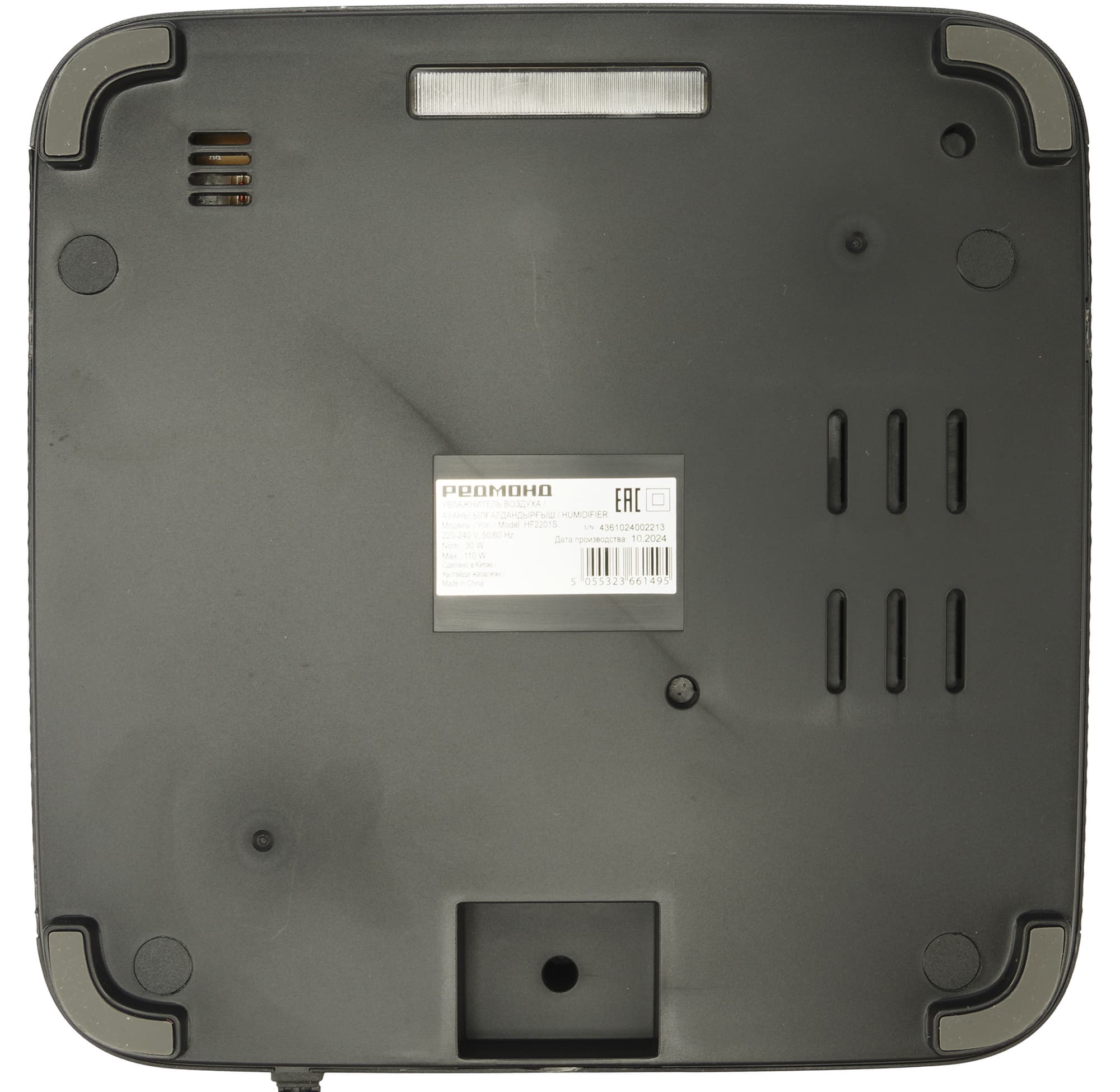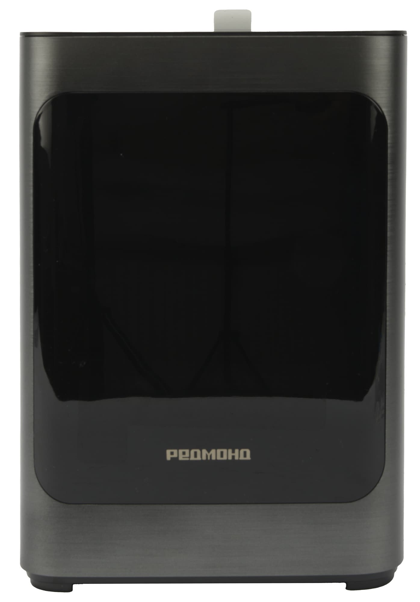 Корпус увлажнителя воздуха Redmond HF2201S сделан из черного матового пластика и имеет форму параллелепипеда со скругленными углами.
