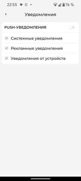 Приложение предоставляет гибкие возможности управления уведомлениями: если вам почему-то не захочется получать рекламные сообщения от производителя, их можно отключить, сохранив возможность получать оперативную информацию о работе прибора.