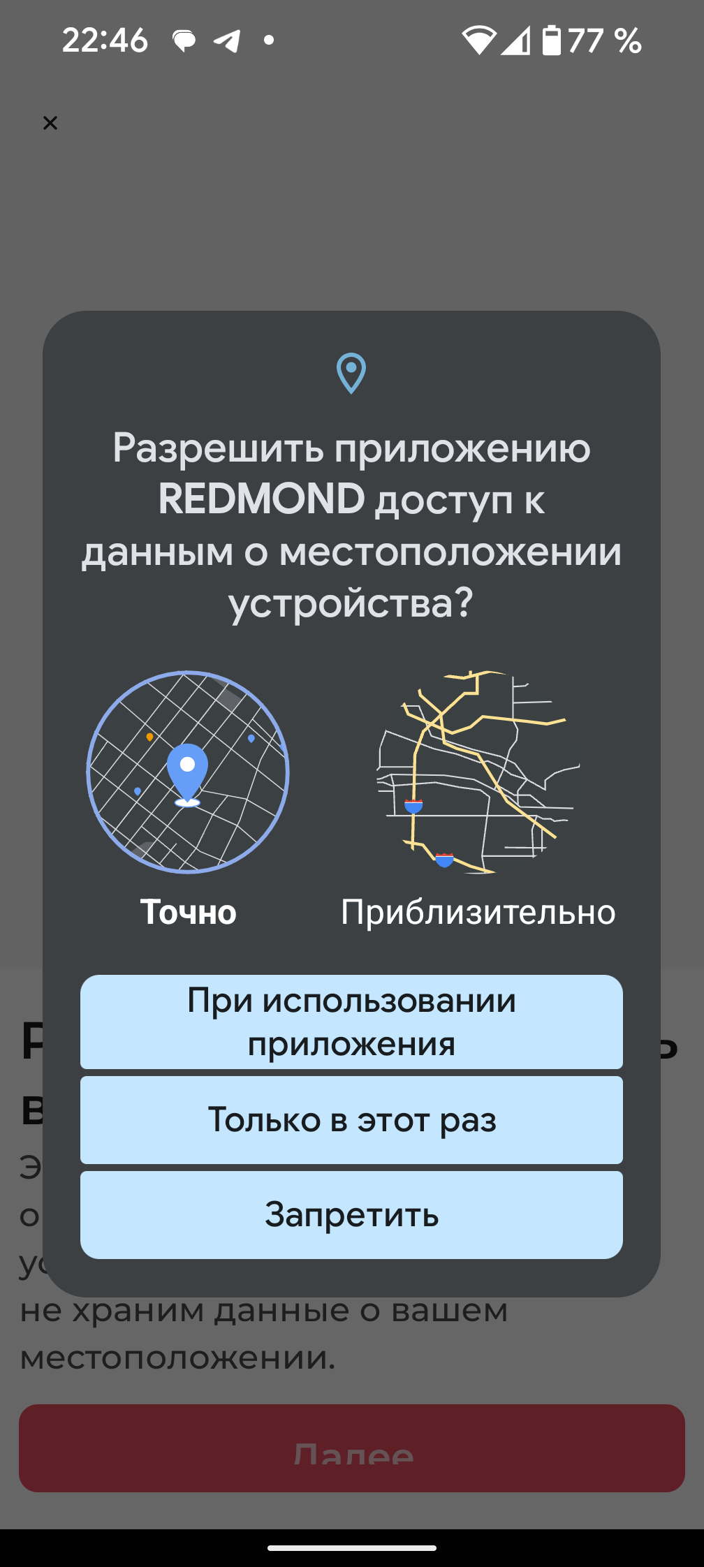 Для начала синхронизации программа требует доступа к информации о местоположении смартфона. Впоследствии это разрешение можно отозвать без потери функциональности.