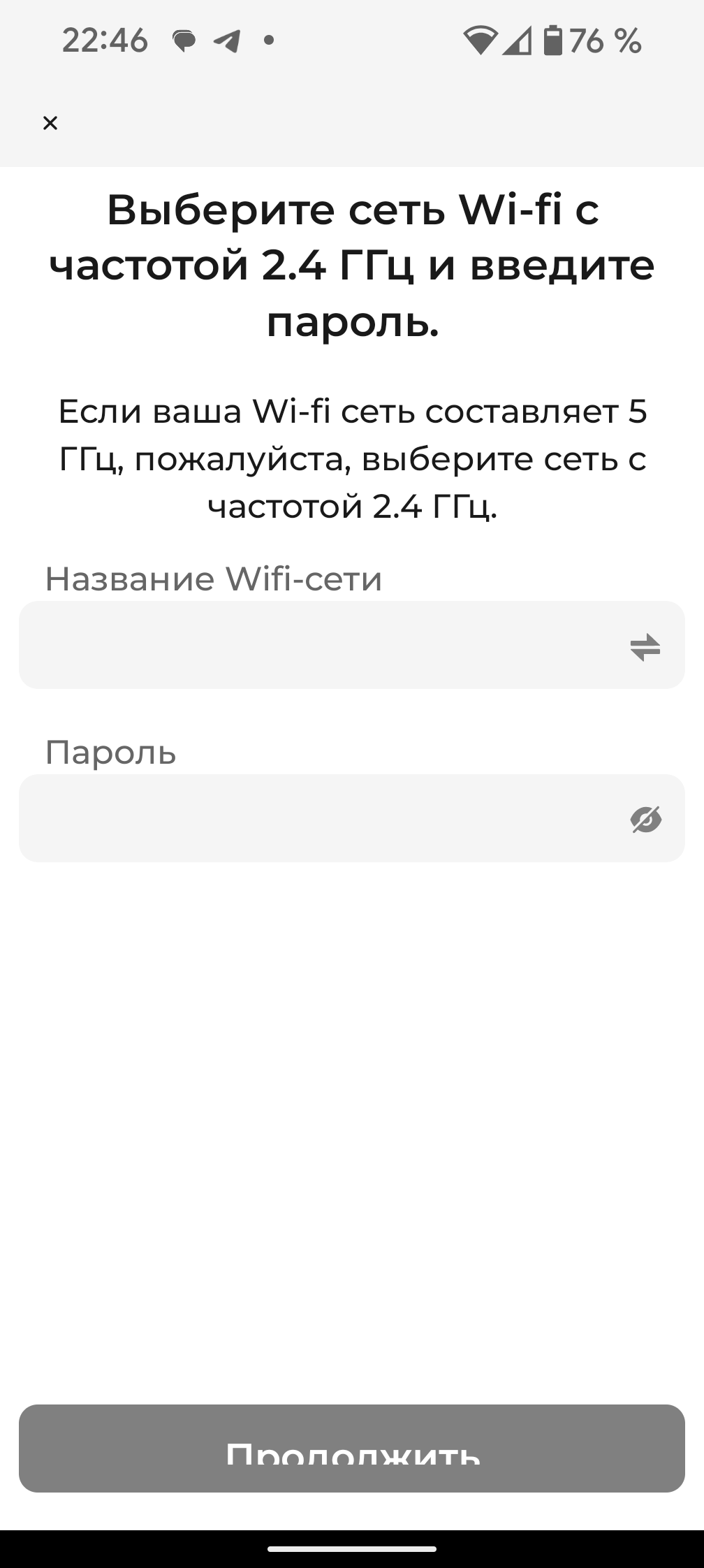 После этого нам необходимо ввести SSID и пароль от нашей Wi-Fi-сети и активировать режим сопряжения на увлажнителе, зажав кнопку Power на несколько секунд. После активации прибор становится доступен для подключения.