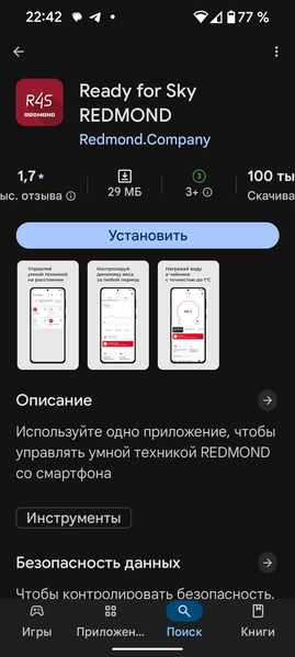 Для управления с мобильного телефона производитель рекомендует приложение Ready for Sky Redmond собственной разработки.