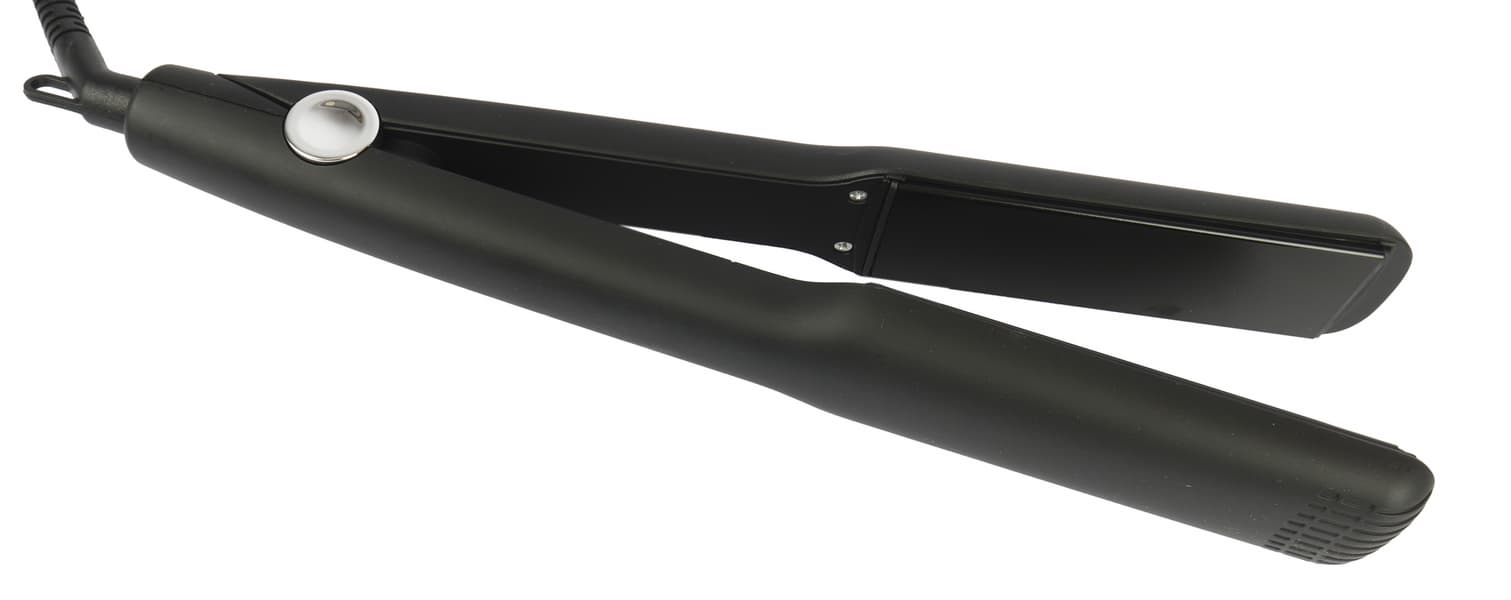 Корпус устройства изготовлен из черного матового пластика. На ручке имеется глянцевый черный пластик с окантовкой серебряного цвета, на ее ребре мы видим три серебряные кнопки, также серебряной краской на приборе нанесено наименование марки. Сборка устройства выглядит качественно, а сам выпрямитель — лаконично.