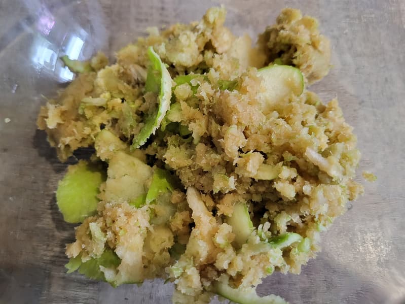 И 270 г жмыха, достаточно сухого, но в котором видны крупные фрагменты яблок.