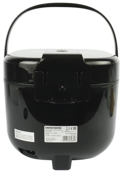 В коробке прибор защищен от ударов и повреждений с помощью пенопластовых вкладок, удерживающих корпус мультиварки в неподвижности. Коробка оснащена ручкой, что облегчает ее транспортировку.
