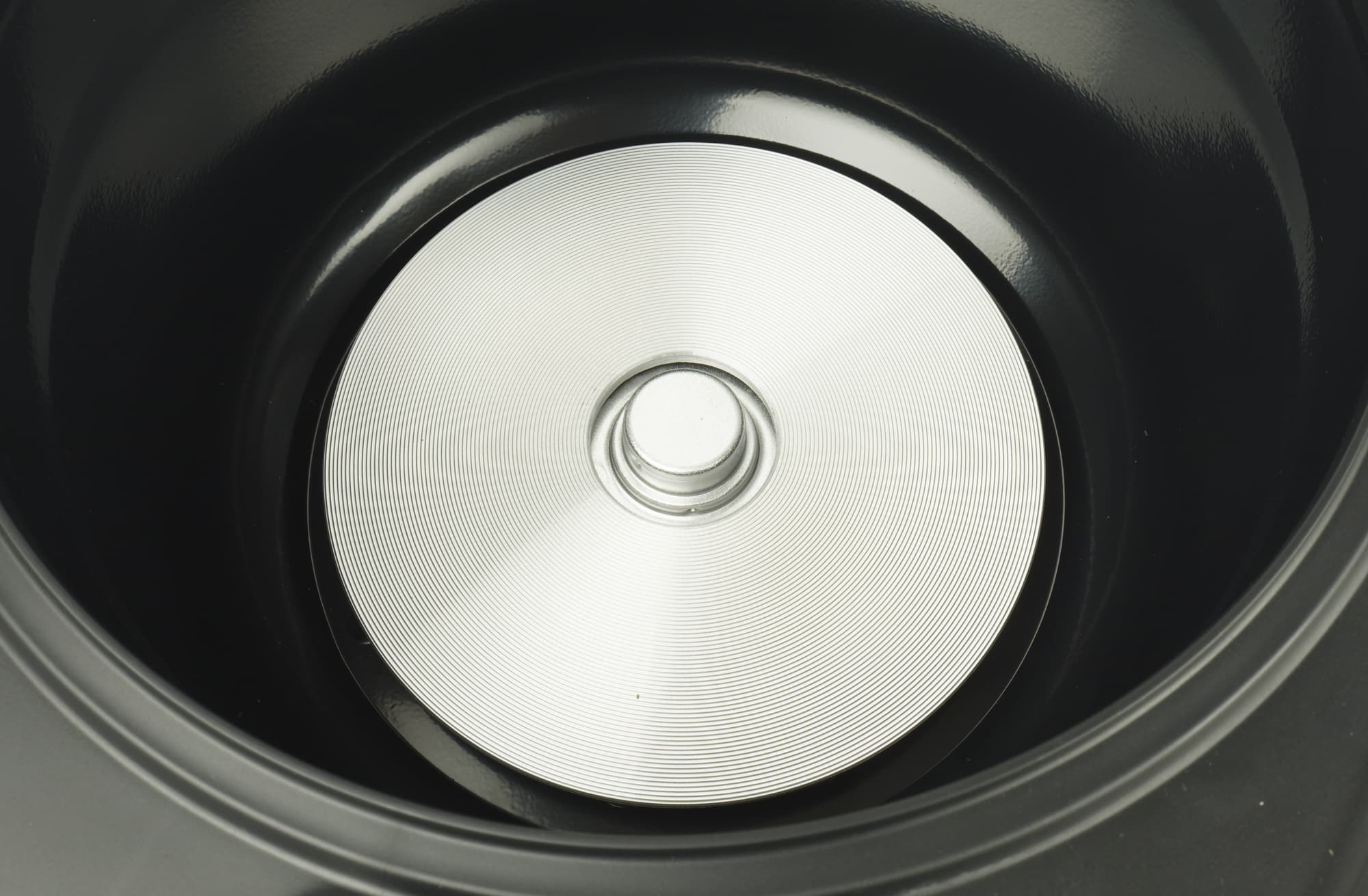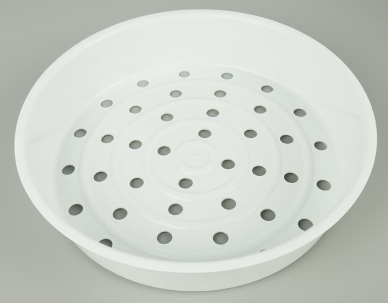 Внутрь прибора вставляется чаша с антипригарным покрытием Daikin. Чаша легкая, простой формы, формально рассчитана на пять литров, но полезный объем — 3,5 л. На внутренней стороне есть шкала с указанием объема.