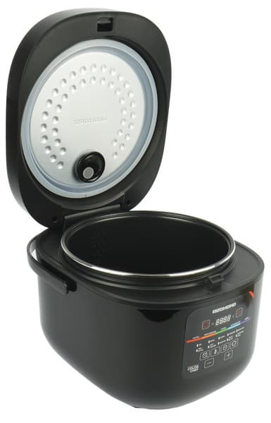 Прибор имеет стандартный для мультиварки вид, обтекаемые формы и красивый дизайн. Стенки корпуса изготовлены из черного термоустойчивого пластика. Устройство выглядит современным. Спереди размещена панель управления с сенсорными кнопками и светодиодным дисплеем.