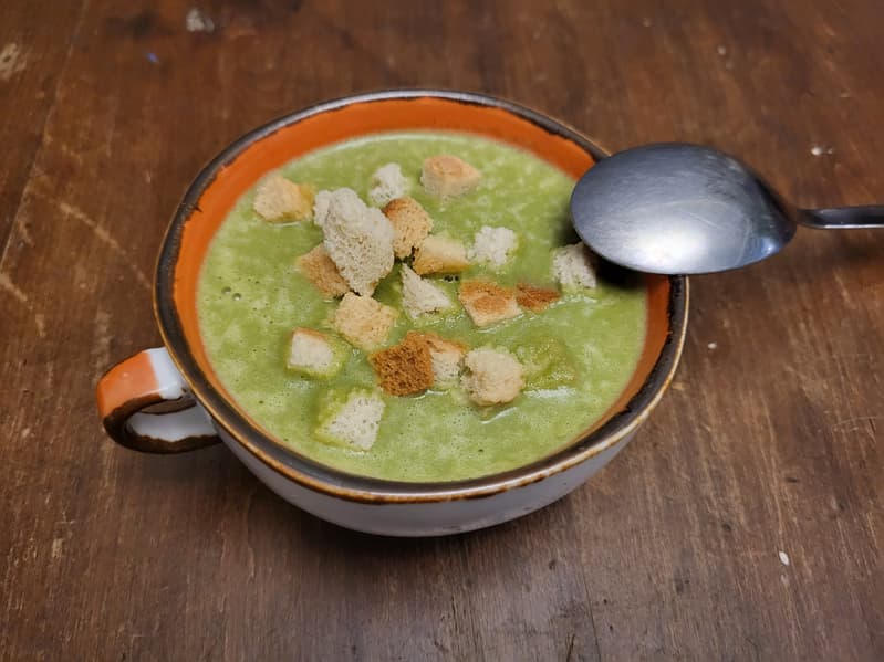 Через полчаса программа закончила работу, суп сварился, и мы отправили его в блендер, где обычный суп превратился в суп-пюре. Добавили в суп сливки и снова взбили.