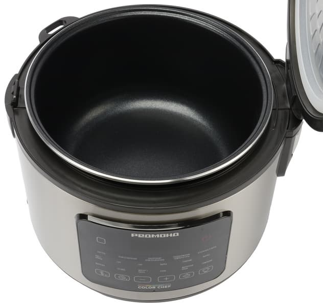 В работе прибор не доставляет никаких трудностей: управление простое и интуитивно понятное. Количество кнопок автоматических программ велико, но каждая снабжена поясняющей надписью. При выборе программы загорается световой индикатор, хотя полностью подсвеченное название программы было бы удобнее — особенно при слабом освещении на кухне. Единственное, чего нам не хватило, — это разноцветных иконок, которые мы ценили в других моделях Redmond. Их отсутствие, впрочем, объяснимо компактными размерами этого прибора.