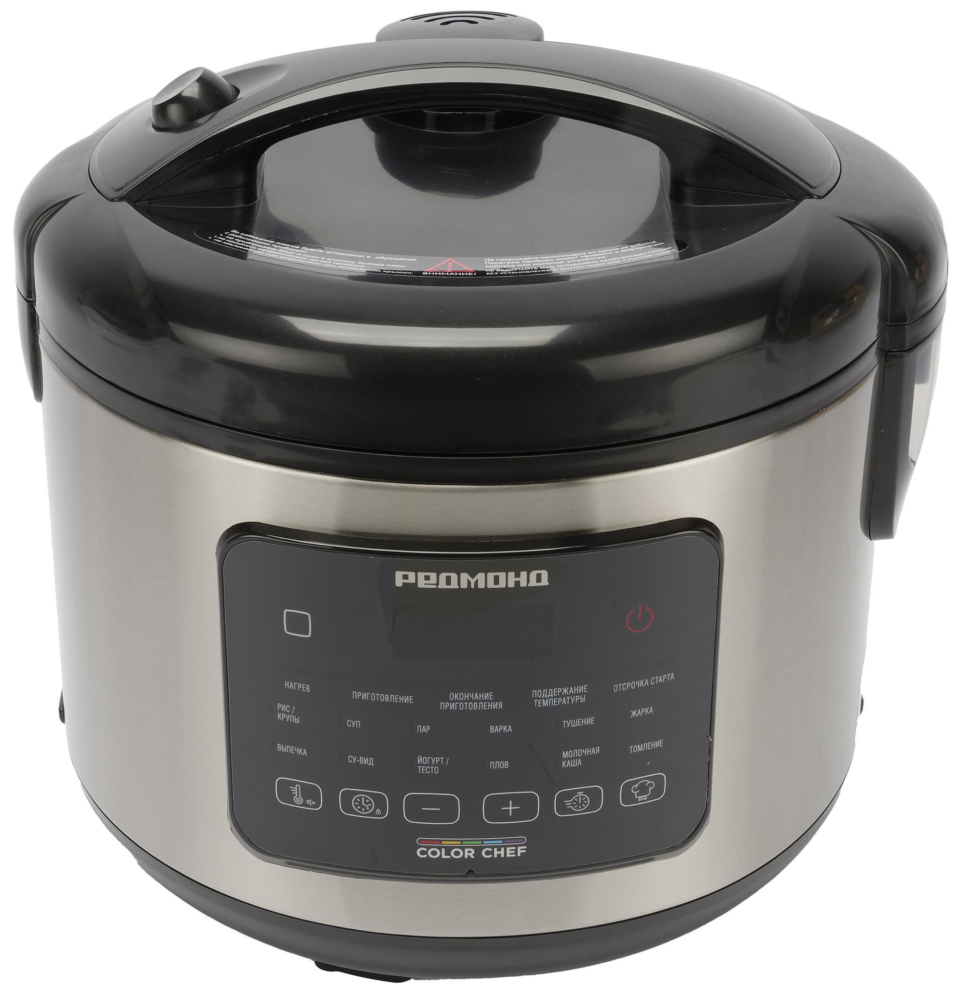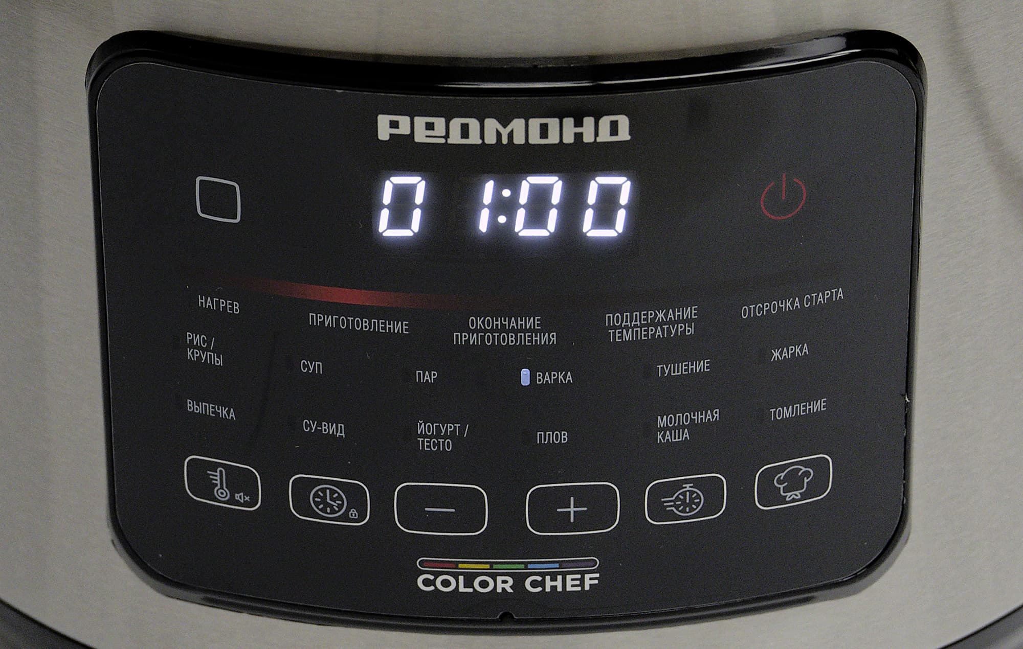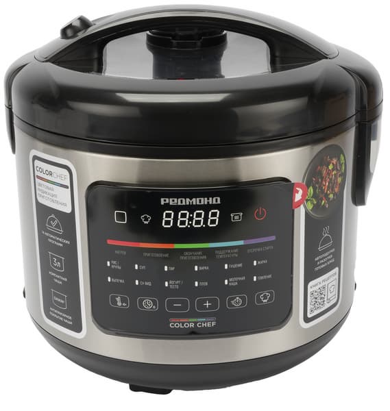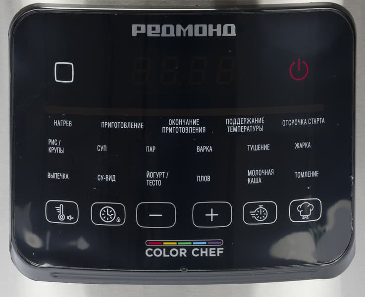 Световая индикация выбранного режима работает хорошо, хотя при слабом освещении было бы удобнее видеть полностью подсвеченные названия программ. Отсутствие цветных иконок, привычных для других моделей Redmond, объяснимо компактными размерами и лаконичным дизайном корпуса.