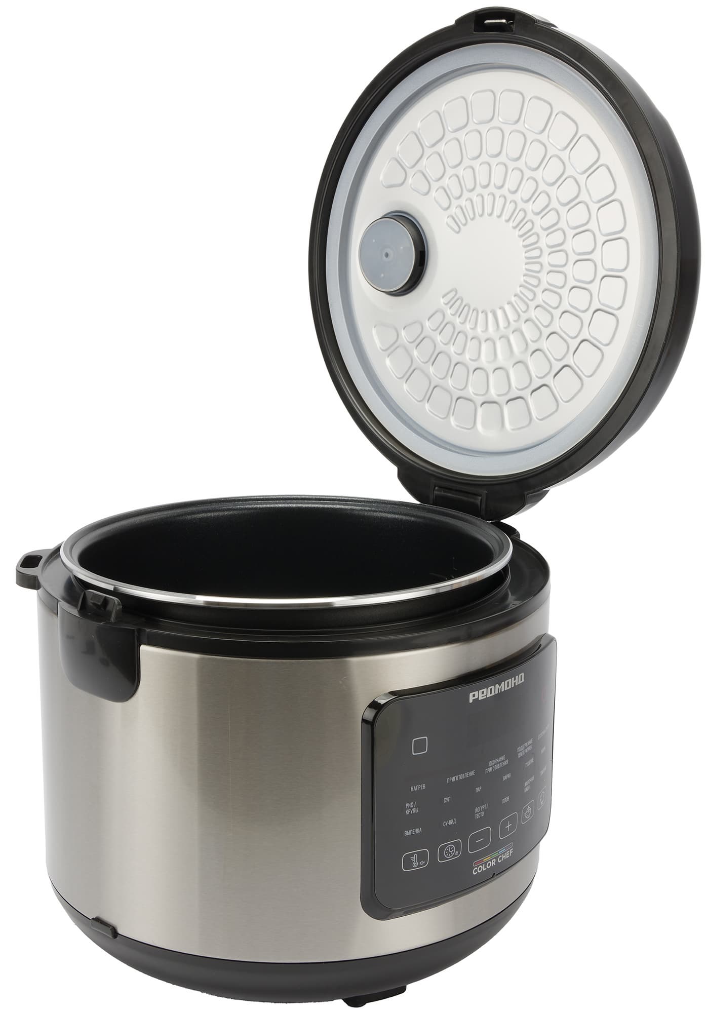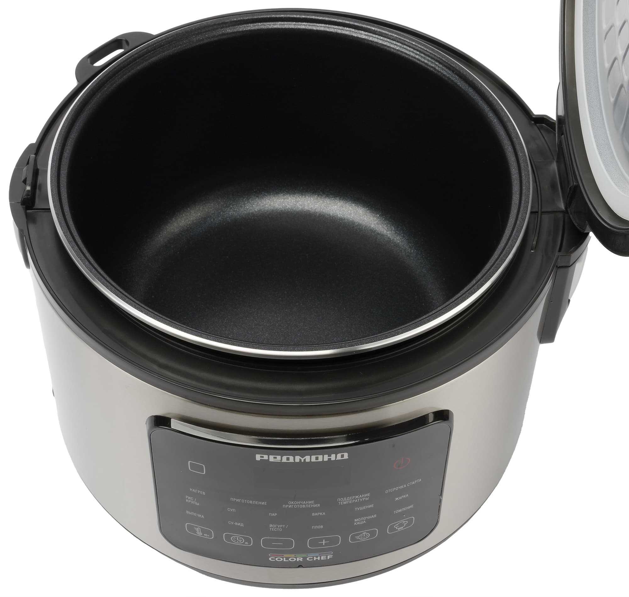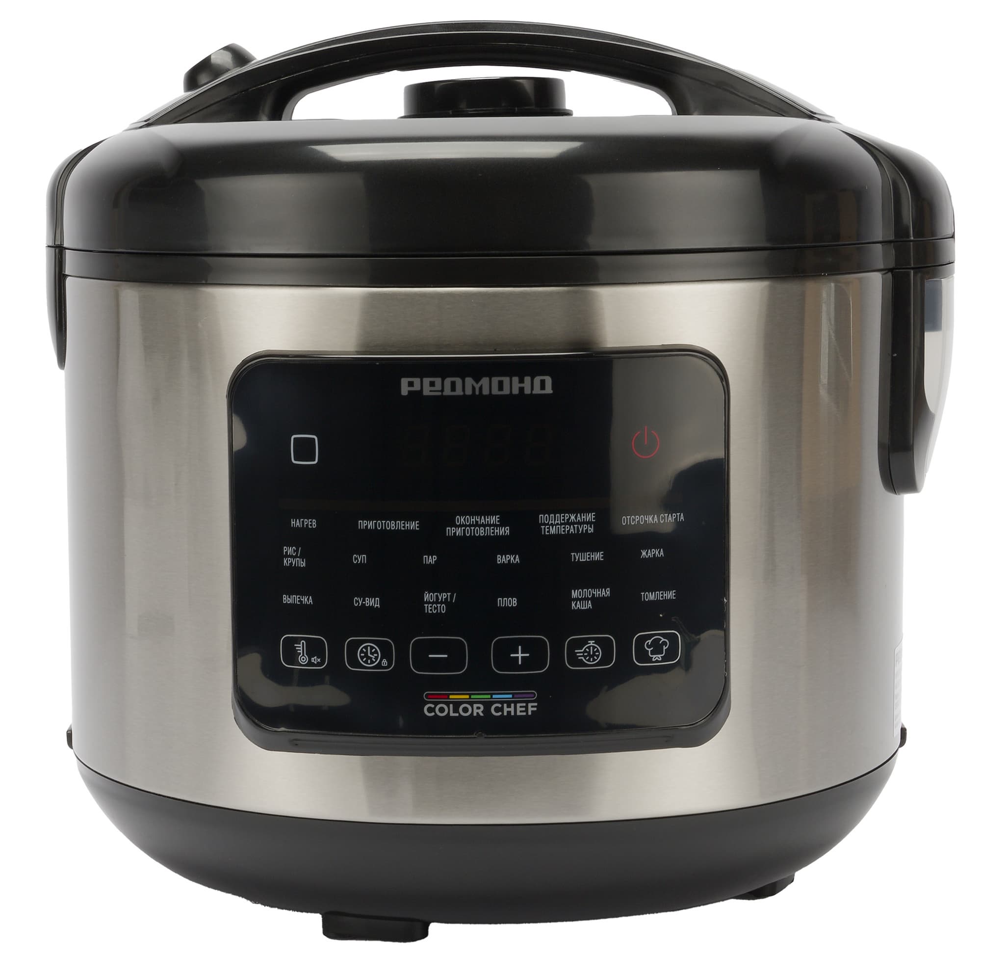 Световая индикация выбранного режима работает хорошо, хотя при слабом освещении было бы удобнее видеть полностью подсвеченные названия программ. Отсутствие цветных иконок, привычных для других моделей Redmond, объяснимо компактными размерами и лаконичным дизайном корпуса.