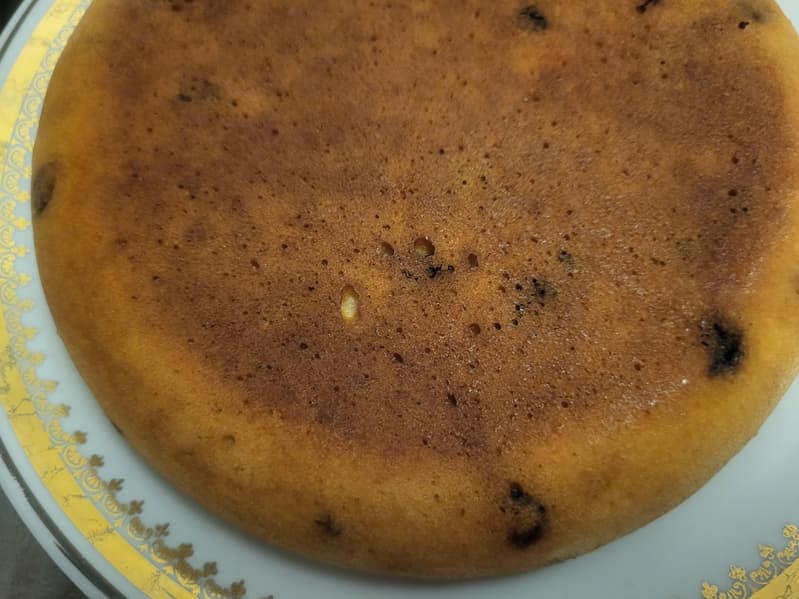 Включили программу «Выпечка». Через час манник испекся. У него был традиционный для приготовления в мультиварке бледный верх.