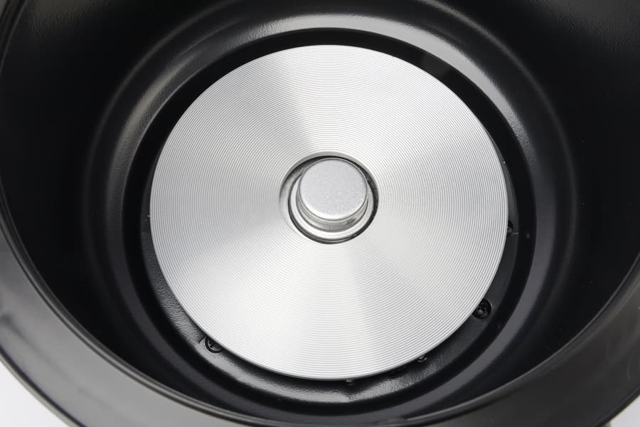 Внутрь устройства устанавливается чаша с антипригарным покрытием Daikin. Она легкая, с простой формой; номинальный объем чаши составляет три литра, однако фактический полезный объем — около двух литров. На внутренней стенке нанесена шкала с отметками уровня жидкости.