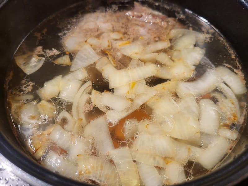 Программа «Томление» рассчитана на три часа работы. Через два часа мы получили прозрачный красивый бульон и стали постепенно закидывать овощи — морковку, картошку и жареный лук.