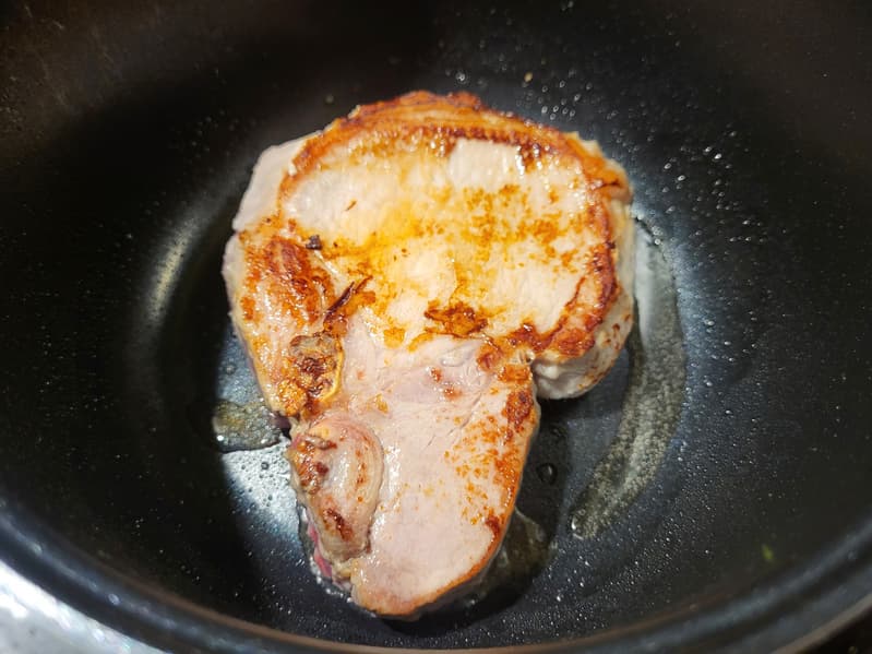 Начали мы с самого простого теста: решили пожарить свинину. Дело в том, что когда жаришь свинину на сковородке, плита и стол вокруг оказываются забрызганы жиром. Здесь, за счет высоких стенок чаши мультиварки, этого не произошло.
