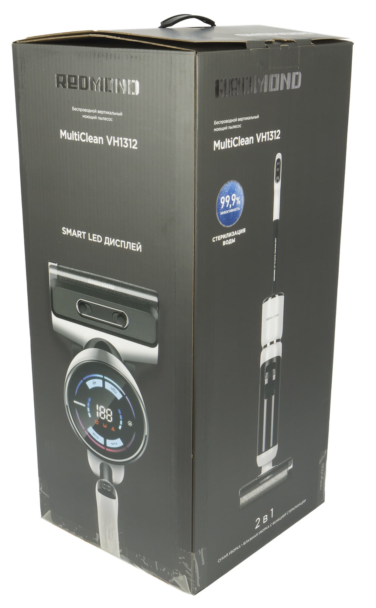 Но у нас на тестах еще не было пылесоса, который бы стерилизовал воду для мытья пола, делая из нее, по объяснению производителя, дезинфицирующий раствор. Мы непременно понаблюдаем за этим процессом сквозь стенки бака для чистой воды. И заодно выясним, насколько качественно Redmond Multiclean VH1312 выполняет свою основную работу, удобно ли им пользоваться, как устроена его самоочистка и надолго ли хватает аккумулятора.