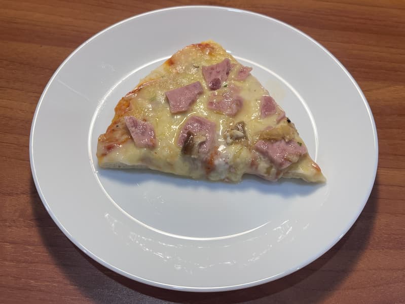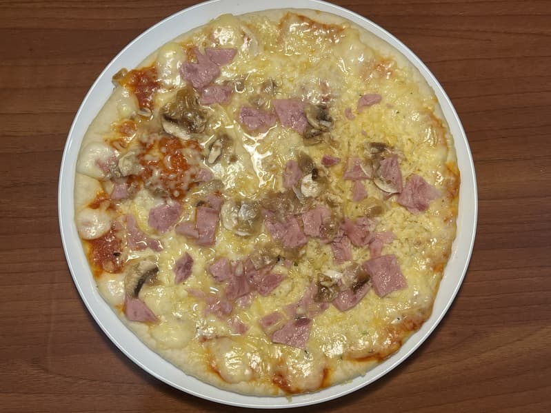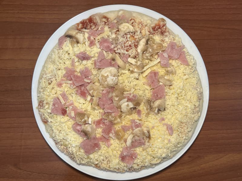 Спустя указанное время мы открыли дверцу и сразу же почувствовали прекрасный аромат расплавленного сыра. Покупная замороженная пицца хоть и не получилась красивой, но оказалась вполне съедобной.