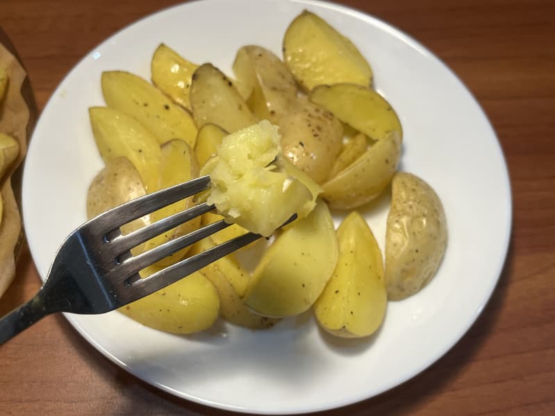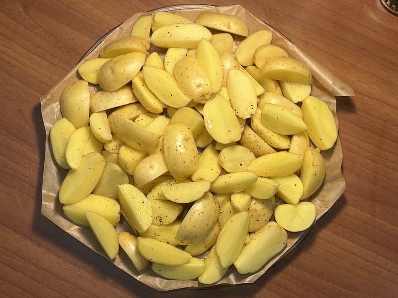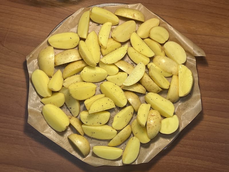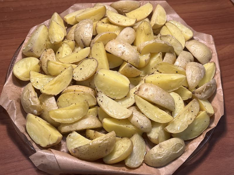 Для теста автоматической программы «Картофель» мы взяли мелкий картофель, помыли его, не очищая, и порезали на четвертинки.