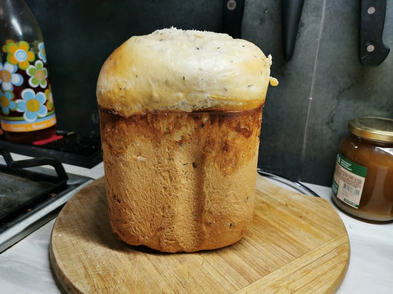 Хлеб выпекался на программе «Классический хлеб», цвет корочки был выбран «Средний».
