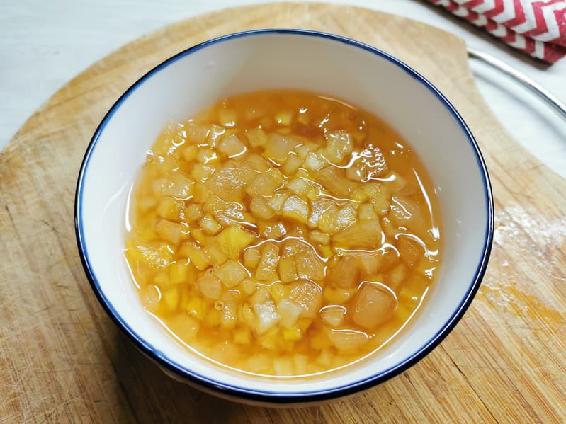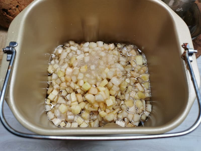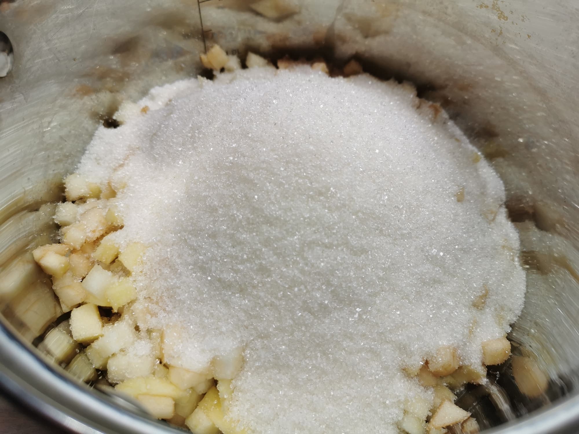 Для приготовления конфитюра нам понадобилось 250 г груши, 250 г яблок, и 400 г сахара.
