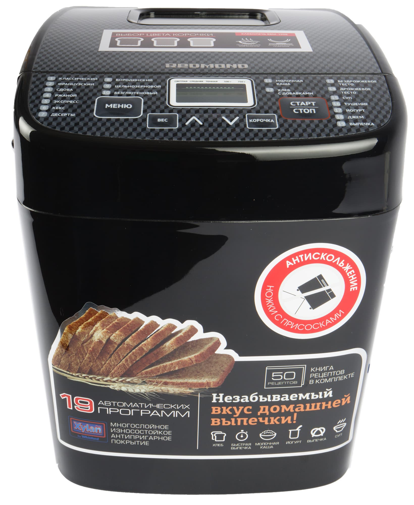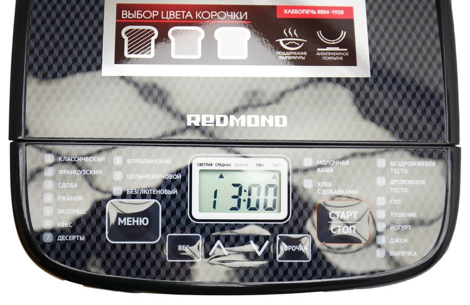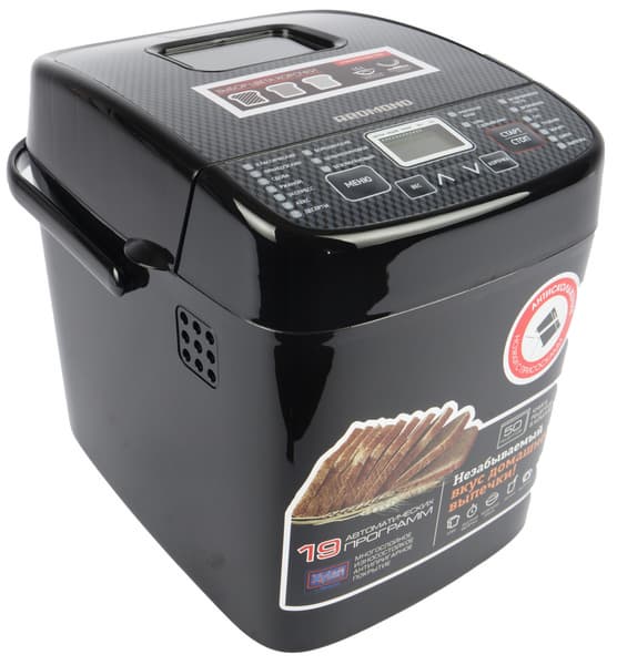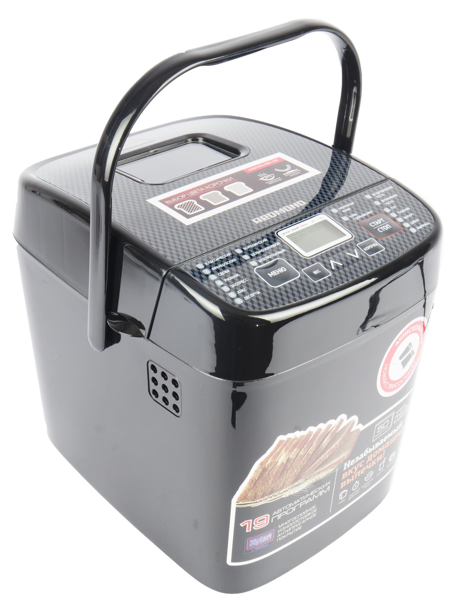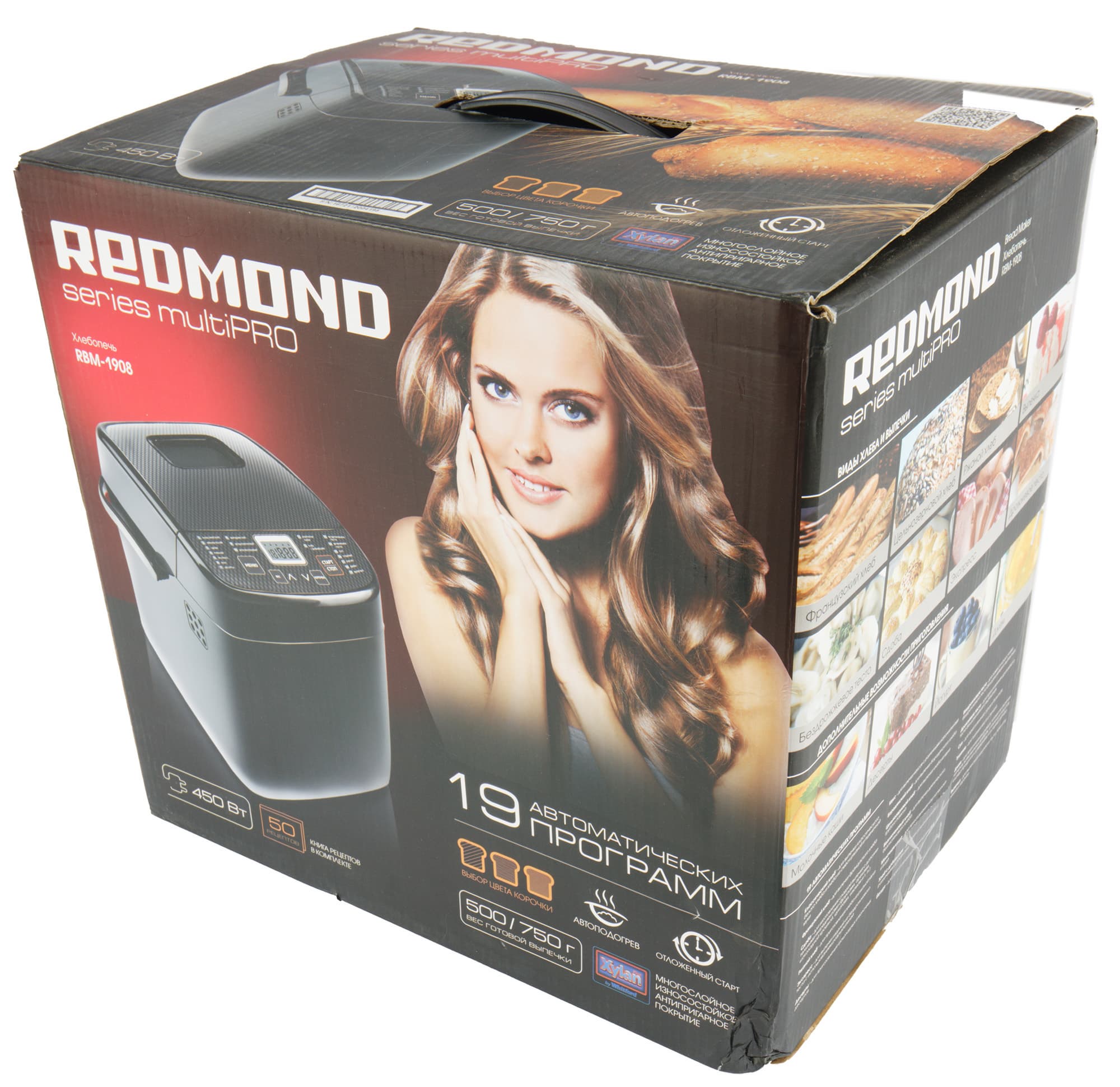Герой нашего обзора — довольно стандартная хлебопечь Redmond RBM-1908, позволяющая выпекать до 750 г хлеба, а также готовить джемы, йогурты и прочие не связанные с хлебом блюда.
