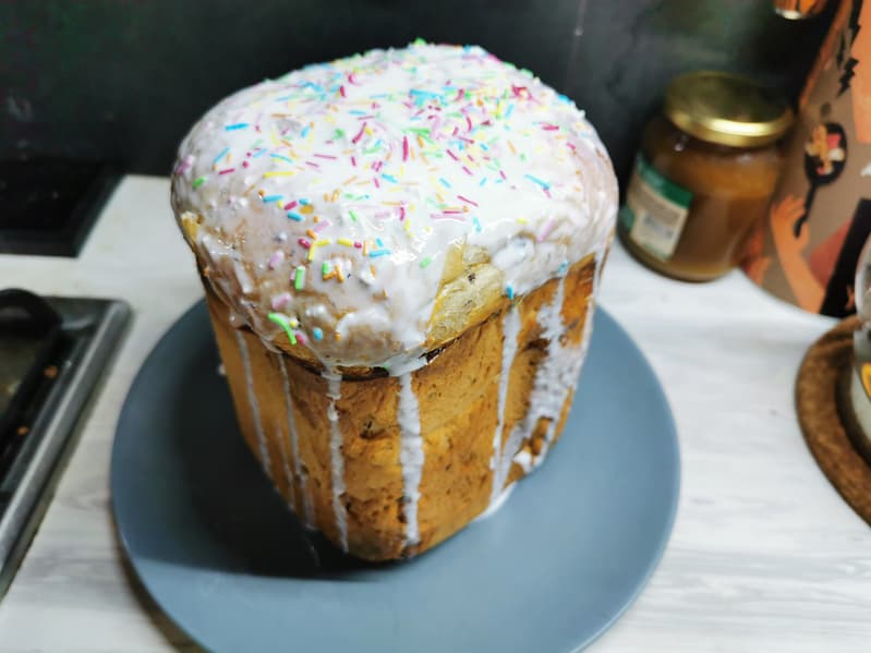 Кулич отлично пропекся, оказался мягким и в меру сладким.