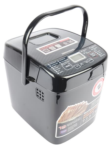 Таким образом, прибор с поставленными задачами в целом справился. При этом данная хлебопечь относится к средней, а не к высшей категории: у нее простой черно-белый дисплей без подсветки, незамысловатая конструкция и скромный внешний вид.