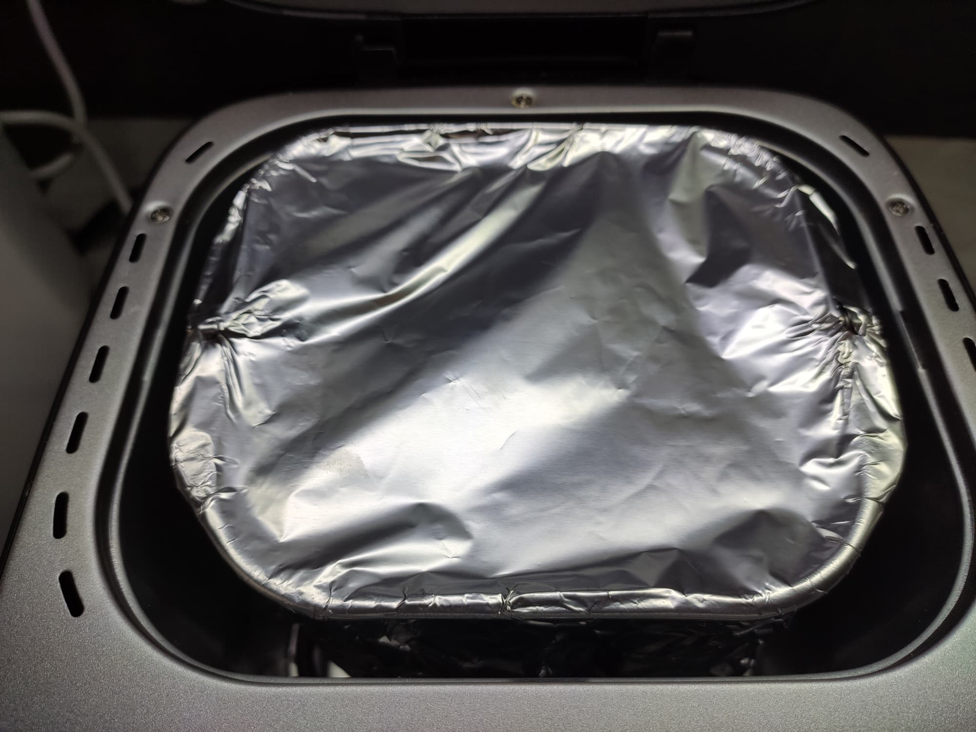 Согласно рецепту, мы взяли овсяные хлопья (100 г), добавили к ним молоко (800 мл), немного сахара и соли, после чего накрыли чашу фольгой, закрепили фольгу по краям.