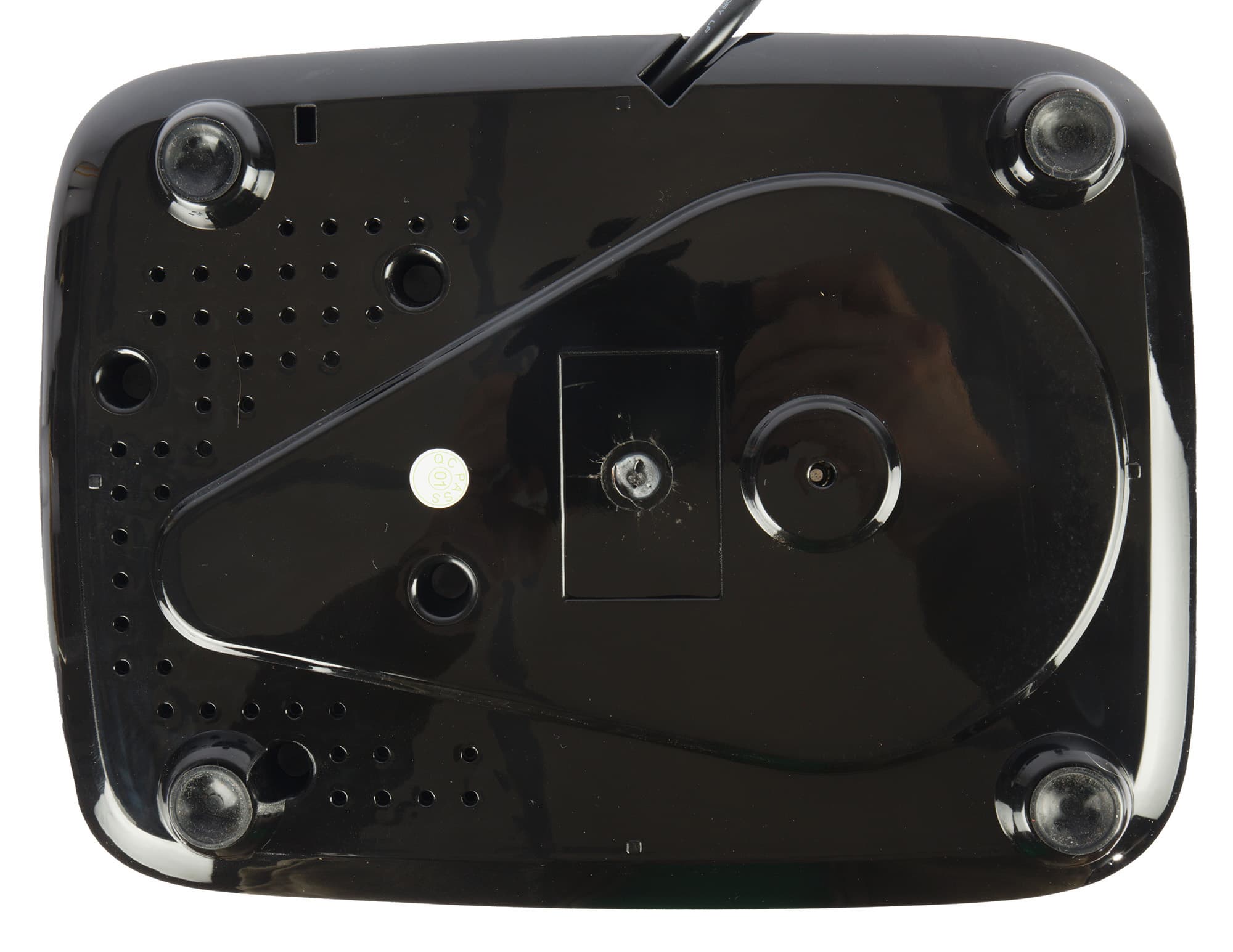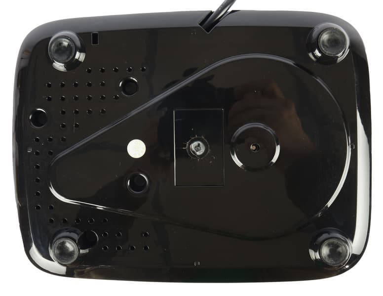 Снизу внимание привлекают ножки-присоски и вентиляционные отверстия. Тут же находится место крепления шнура питания. Отсека для намотки излишков шнура не предусмотрено.