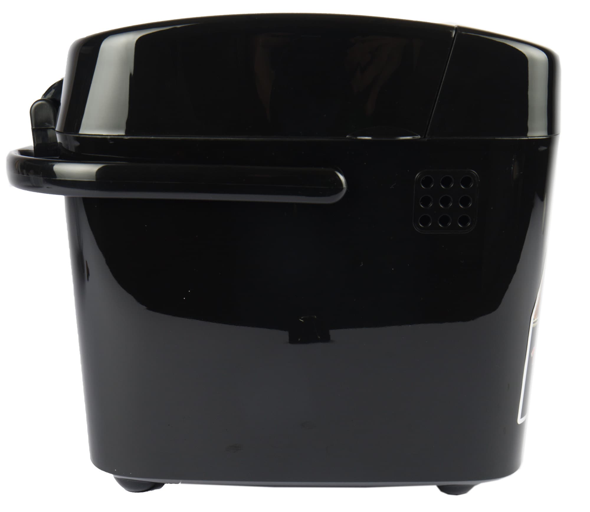 Сбоку у прибора находится вентиляционное отверстие и откидная пластиковая ручка, с помощью которой удобно переносить хлебопечь.
