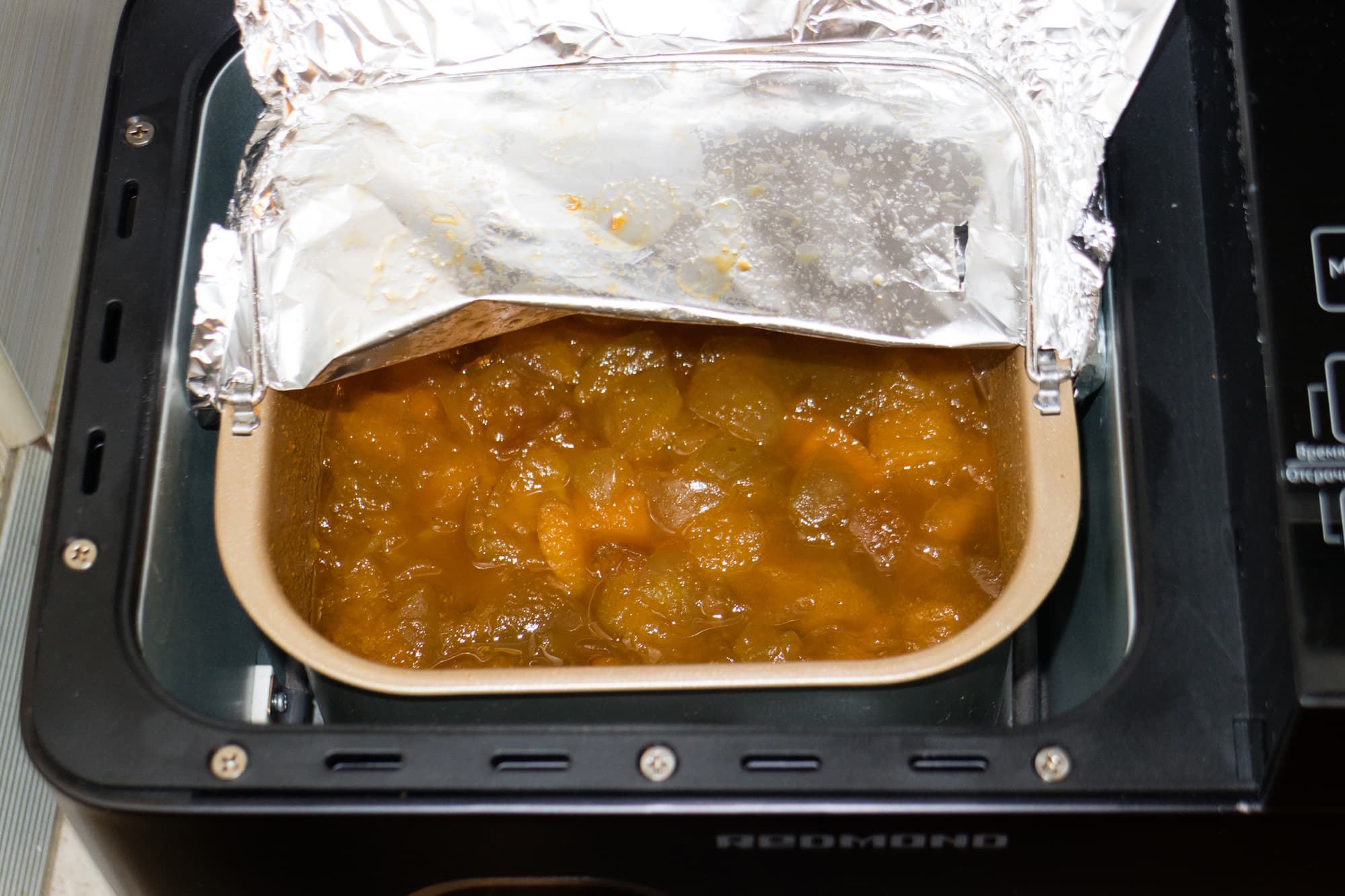 Джем получился ароматный, с отдельными кусочками фруктов. Дно и внутренние стороны хлебопечки чистые.