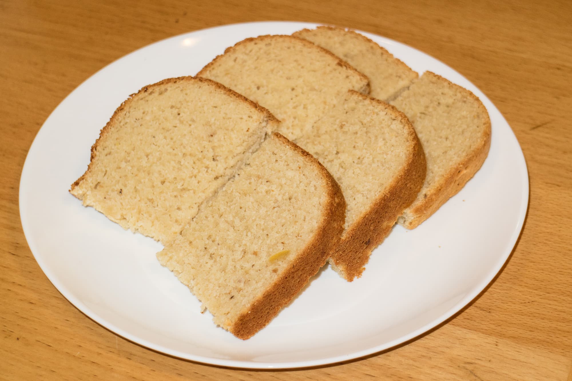 Получилась довольно вкусная и ароматная выпечка, однако, кексом в классическом понимании назвать это, на наш взгляд, несколько неправильно. Корочка равномерная, тесто внутри хорошо пропеклось, структура плотная, но не липкая.