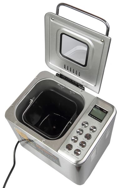Форма и конструкция хлебопечи ничем не удивляет. Прибор выполнен в форме параллелепипеда со скругленными углами. Корпус изготовлен из нержавеющей стали, за счет этого выглядит довольно строго и элегантно. Думаем, что аппарат придется к месту в кухне любого дизайна. Поверхность металла хорошо обработана, гладкая на ощупь.