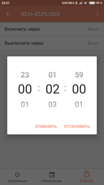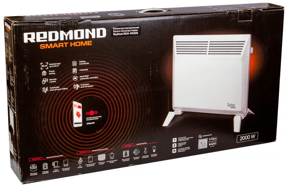 Как и другие приборы Redmond из линейки Ready for Sky, обогреватель SkyHeat RCH-4530S подразумевает возможность управления со смартфона или планшета под управлением Android или iOS (поддерживаются версии ОС начиная с Android 4.3 Jelly Bean или iOS 9.0 соответственно). Также необходимым требованием является поддержка Bluetooth 4.0, поскольку связь смартфона с бытовыми приборами осуществляется посредством Bluetooth-соединения.
