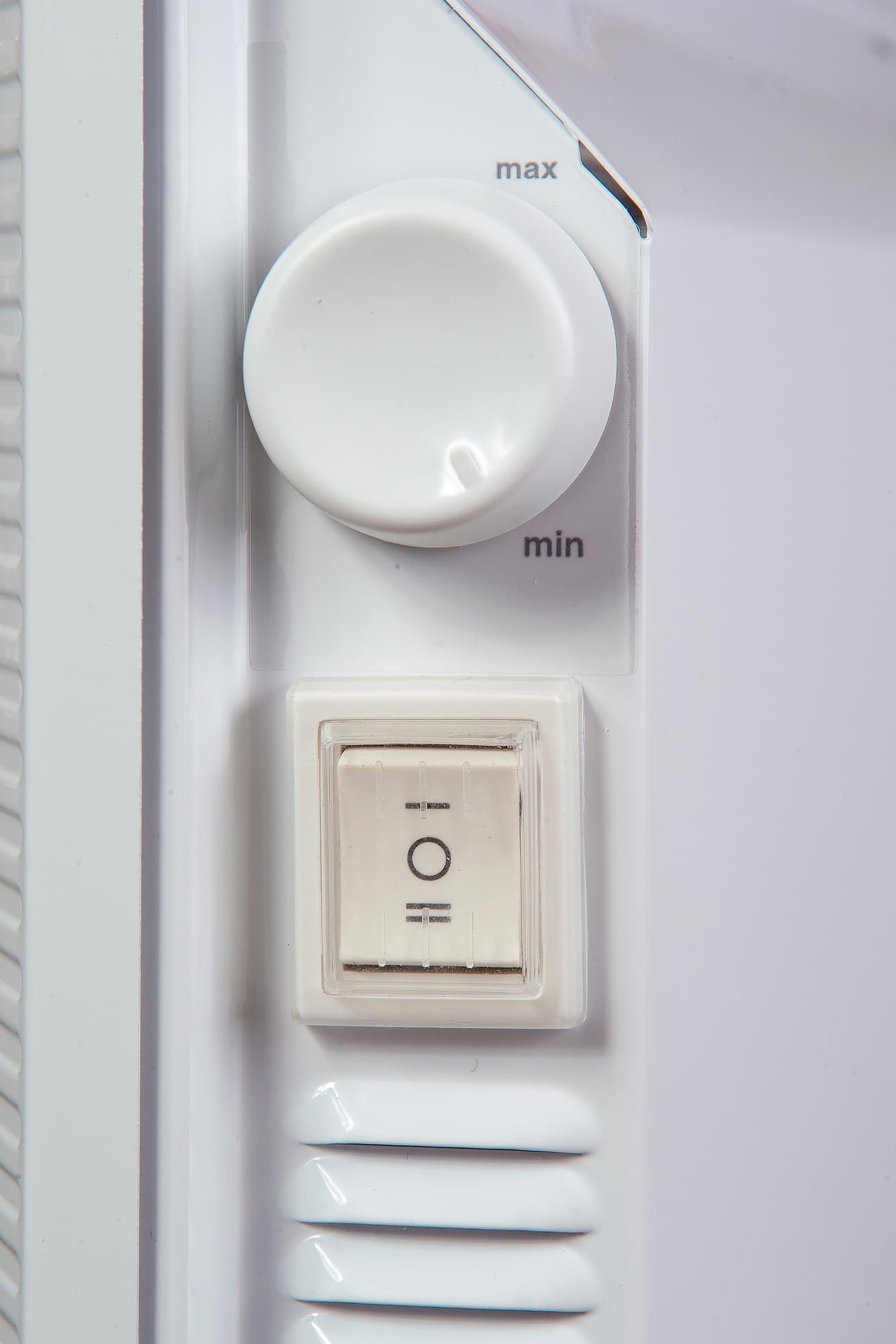 Ручка термостата устанавливает температуру, при которой обогреватель будет отключаться и переходить в режим ожидания. Какой-либо градуировки на ручке при этом не предусмотрено, а это значит, что регулировать уровень температуры придется самостоятельно: вначале выкрутить ее до упора вправо, а потом, как только в помещении установится комфортная температура, повернуть ручку влево до характерного щелчка.