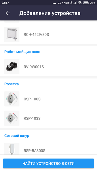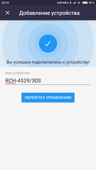 После входа в аккаунт пользователю нужно будет найти свой прибор в списке поддерживаемых устройств и «привязать» его к приложению (для этого нужно в приложении запустить режим обнаружения новых приборов, а на блоке управления Ready for Sky нажать кнопку примерно на 5 секунд).