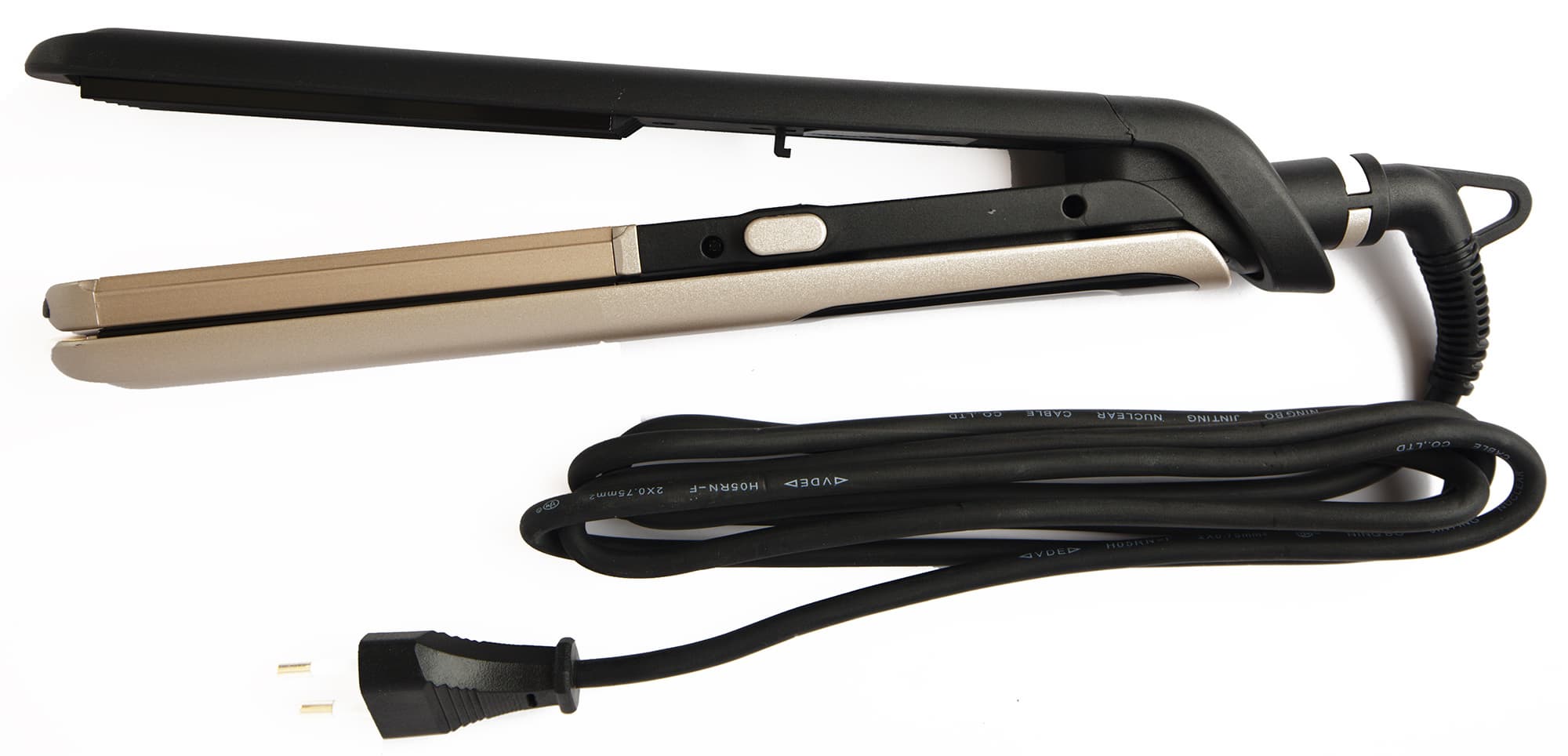 Шнур электропитания соединяется с корпусом шарнирным креплением, дающим стайлеру возможность вращаться на 360°. Место соединения защищено пластиковым кожухом. На приборе предусмотрена петля для подвешивания.