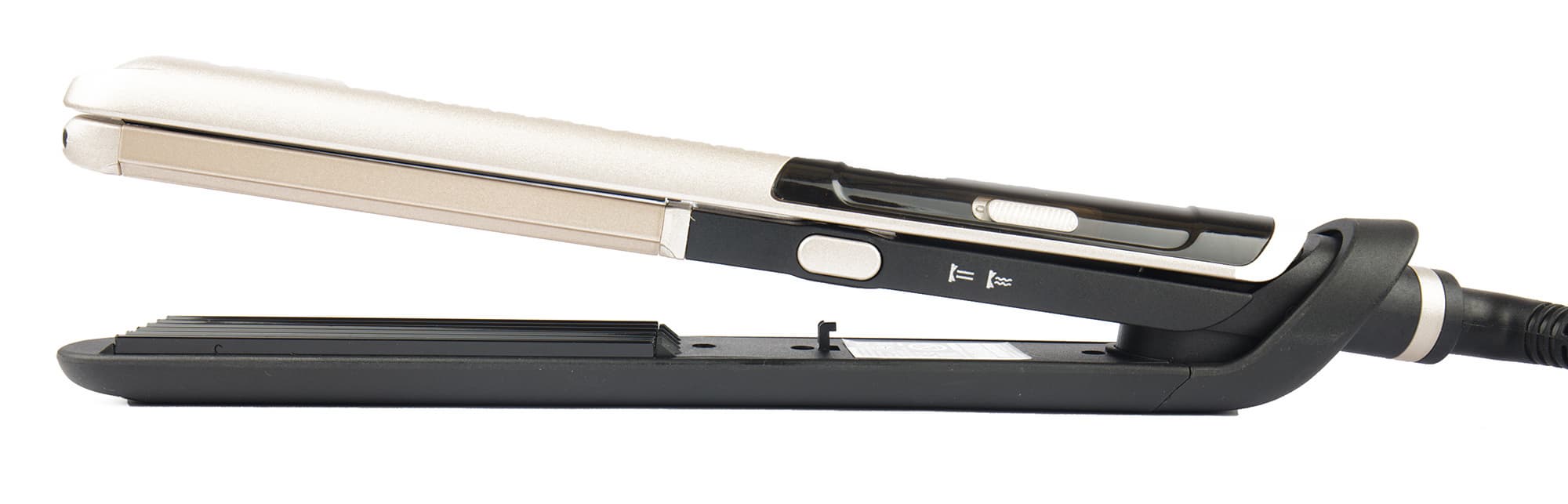 Габариты и вес стайлера стандартны для приборов подобного типа. Длина устройства составляет 28 см, размер рабочих панелей — 2,5×10,5 см. Прибор удобно лежит в руке, а на пластике корпуса не остаются следы от пальцев.