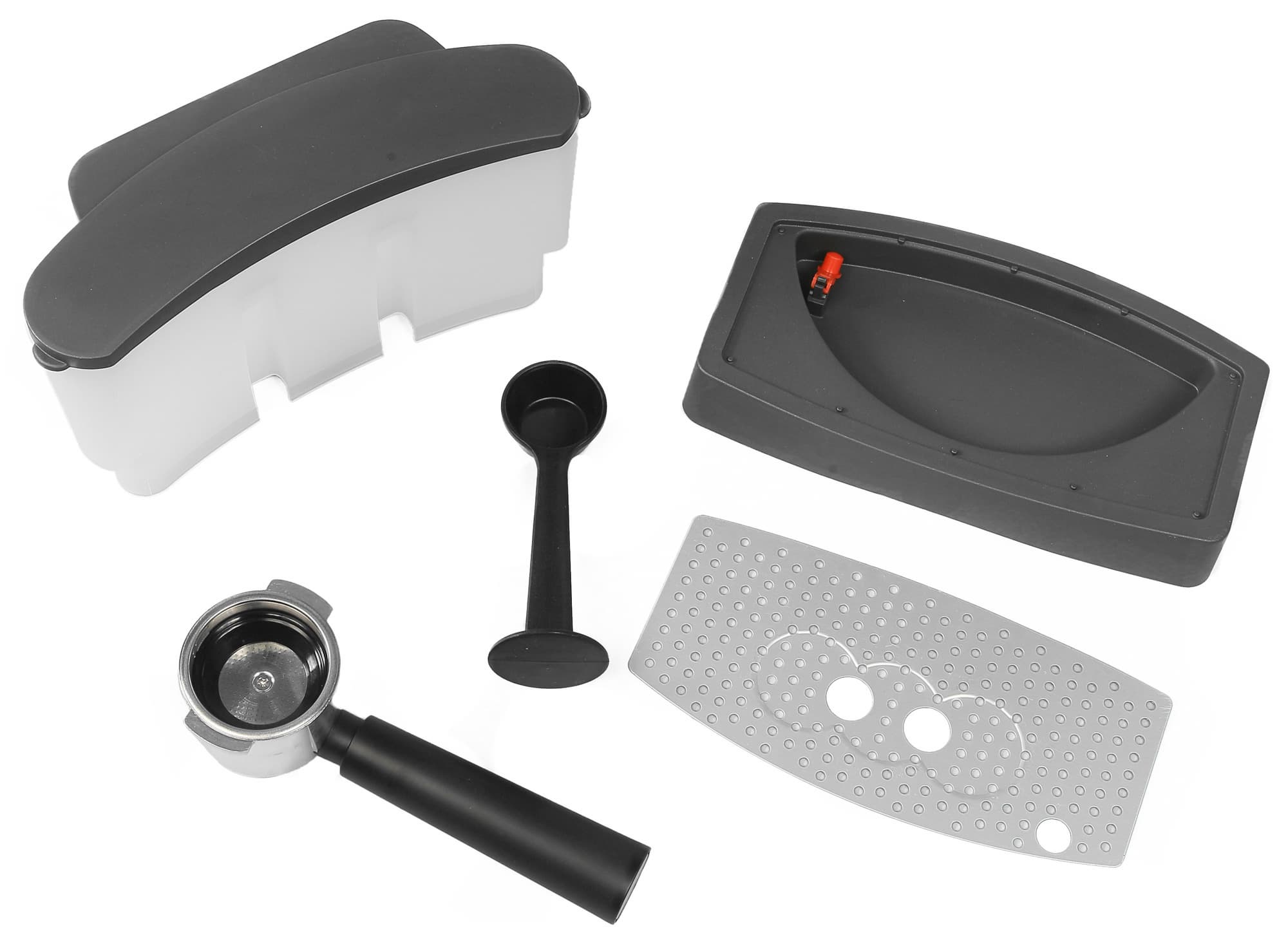 Поскольку фильтр рожка зафиксирован с помощью винта, в процессе вытряхивания отработанного кофе можно не опасаться, что вместе с гущей вывалится и фильтр. Наконец, поддон для сбора капель без труда извлекается из кофеварки.