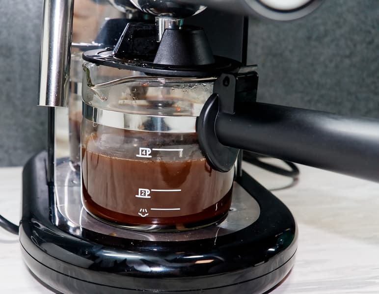 Для приготовления полной порции (4 чашки) мы наполнили рожок кофе, помолотым под стандартный эспрессо.